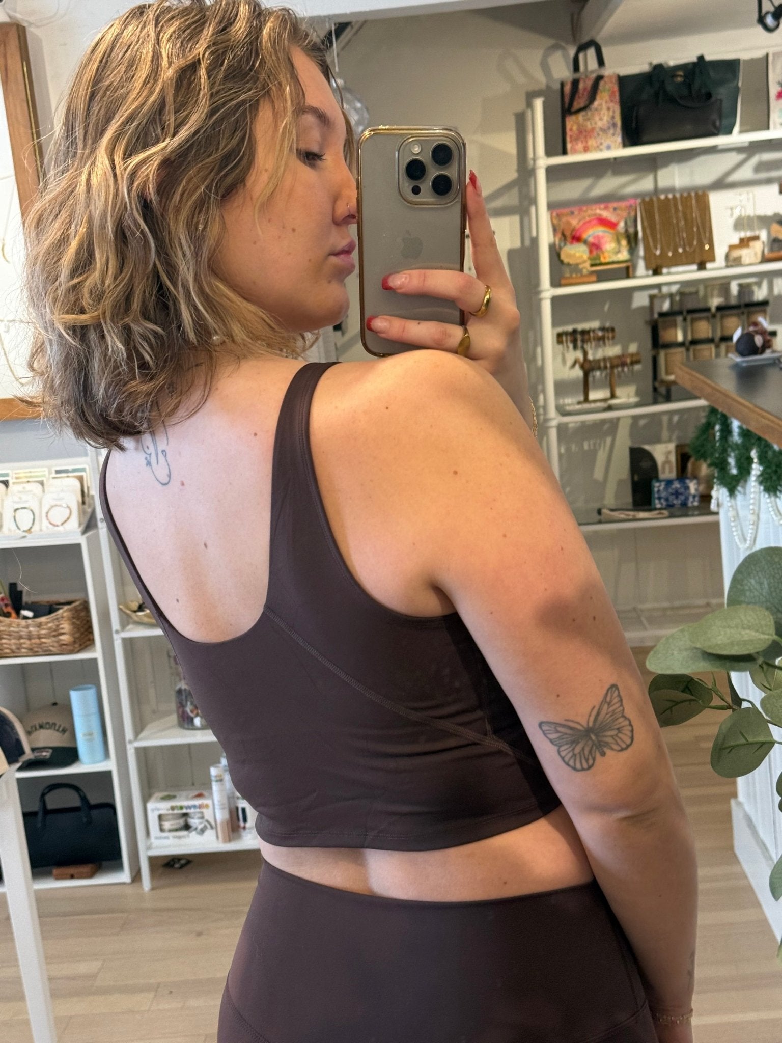 The My Resolution Top in rich brown is your go-to workout companion, engineered for performance, comfort, and effortless style. Designed with the active lifestyle in mind, this workout tank top seamlessly blends functionality with a sleek, flattering silhouette, making it ideal for everything from high-intensity training sessions to yoga flows and casual athleisure wear. Its lightweight, breathable design ensures that you can focus on your goals while feeling supported and comfortable every step of the way.