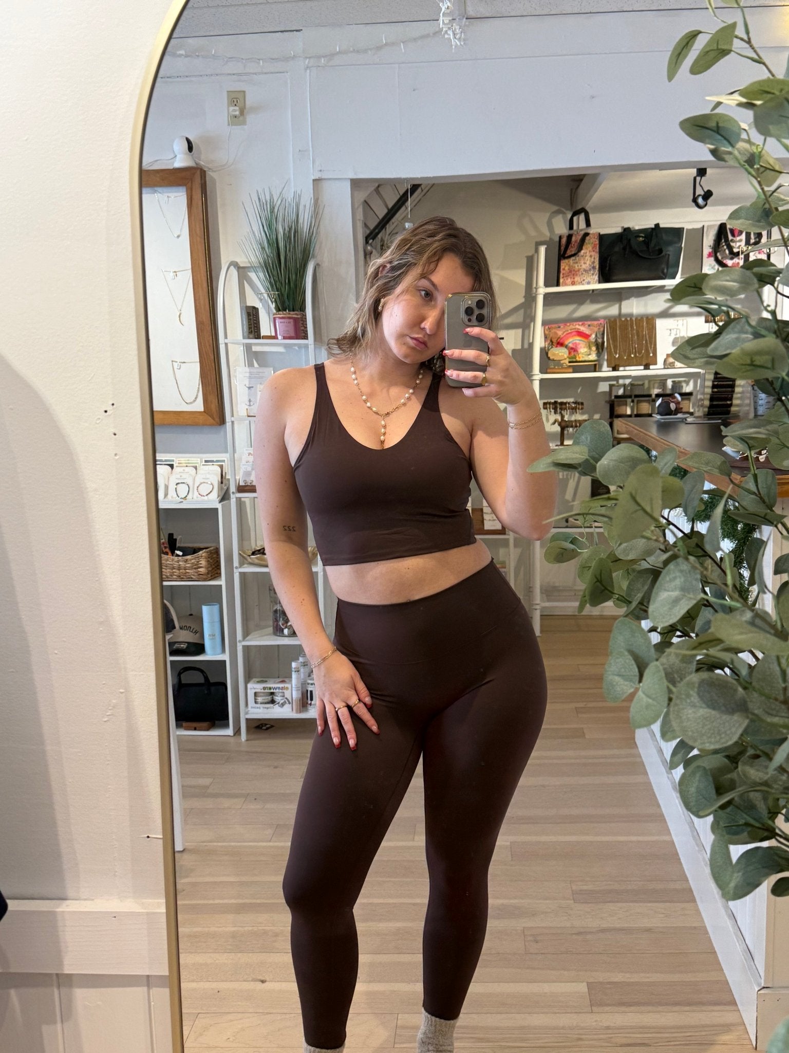 The sleek brown tone of the My Resolution Top makes it versatile and timeless, ideal for mixing and matching with other activewear pieces or even casual staples for off-duty looks. Its minimalistic yet functional design allows it to transition seamlessly from gym to street, giving you a polished, put-together appearance while staying performance-ready.