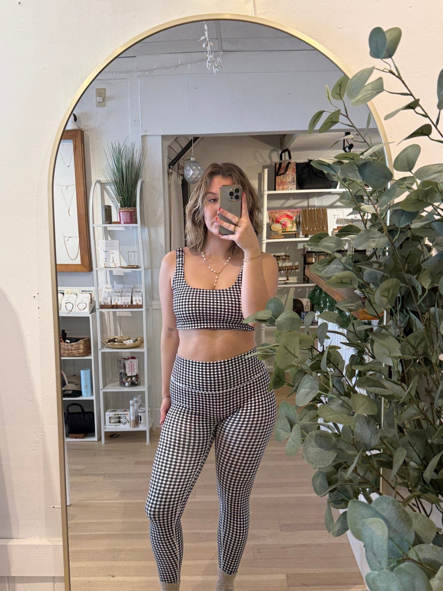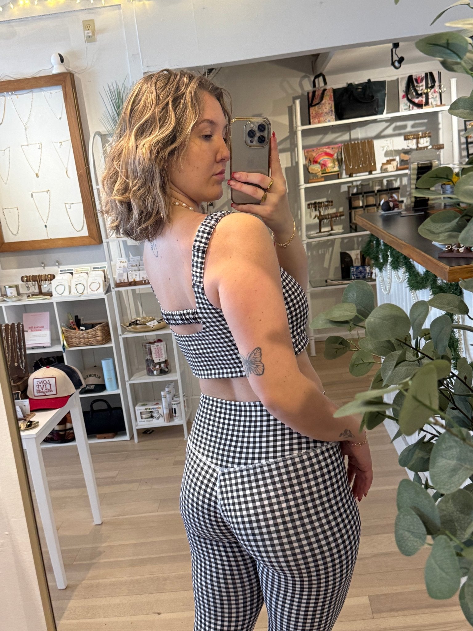 The New Year Top is a fresh, fashion-forward piece designed to make a statement while delivering comfort and versatility. Featuring a timeless black-and-white gingham print, this bra-style top blends playful pattern with modern design, creating a look that feels both classic and bold. Whether you’re ringing in the new year, heading to a workout, or styling an elevated athleisure outfit, this top is designed to stand out while moving with you.