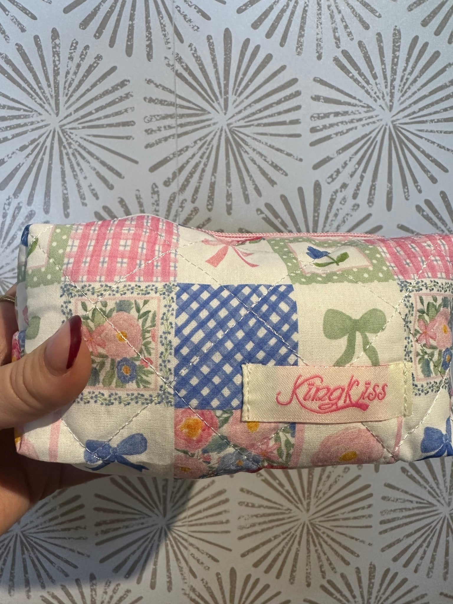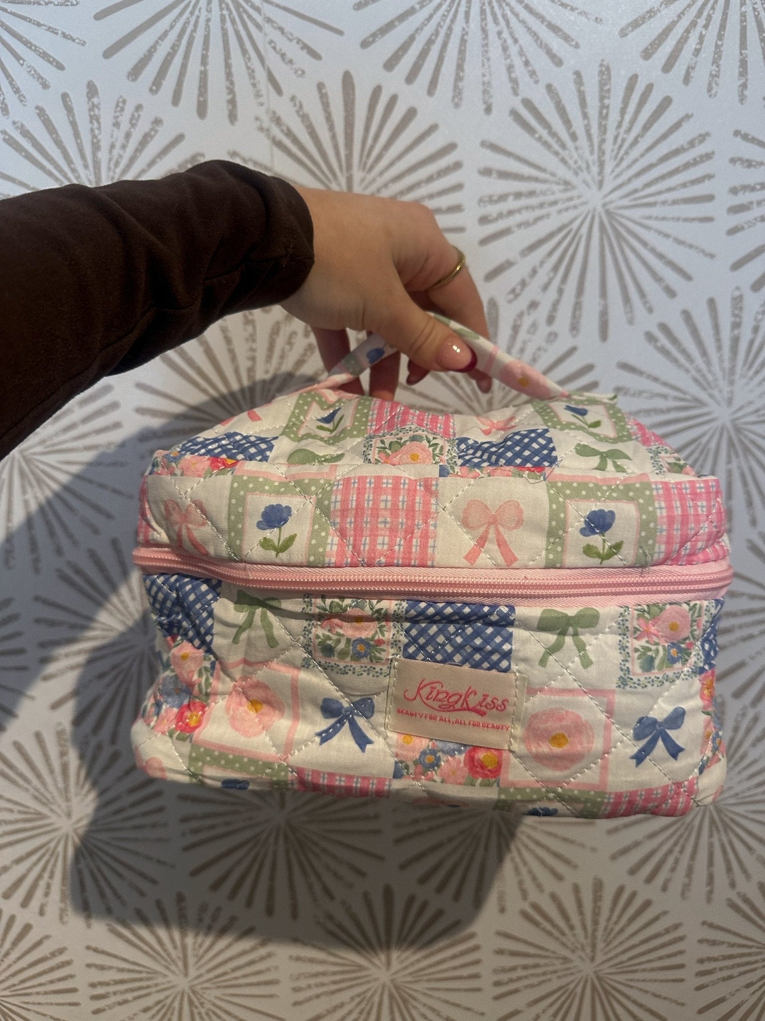 Cute, functional, and travel-ready, this quilted cosmetic bag is the perfect blend of sweet style and everyday practicality—made to go wherever you do.