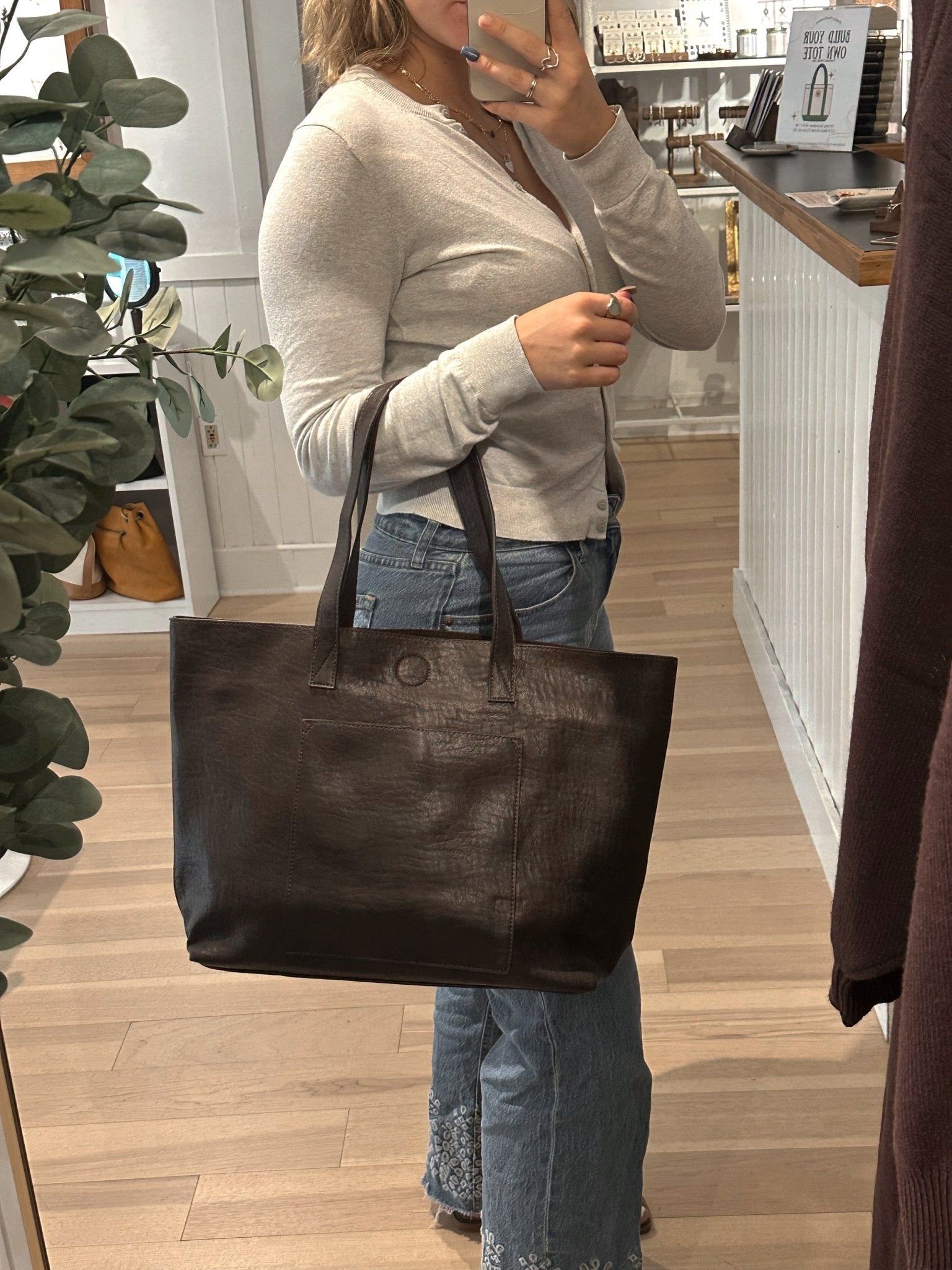 Crafted from rich buffalo grain vegan leather, this oversized Tote has a casual vibe. Three interior compartments enhance the organizational appeal, and the convenient front pocket keeps your phone, keys, and essentials within easy reach.