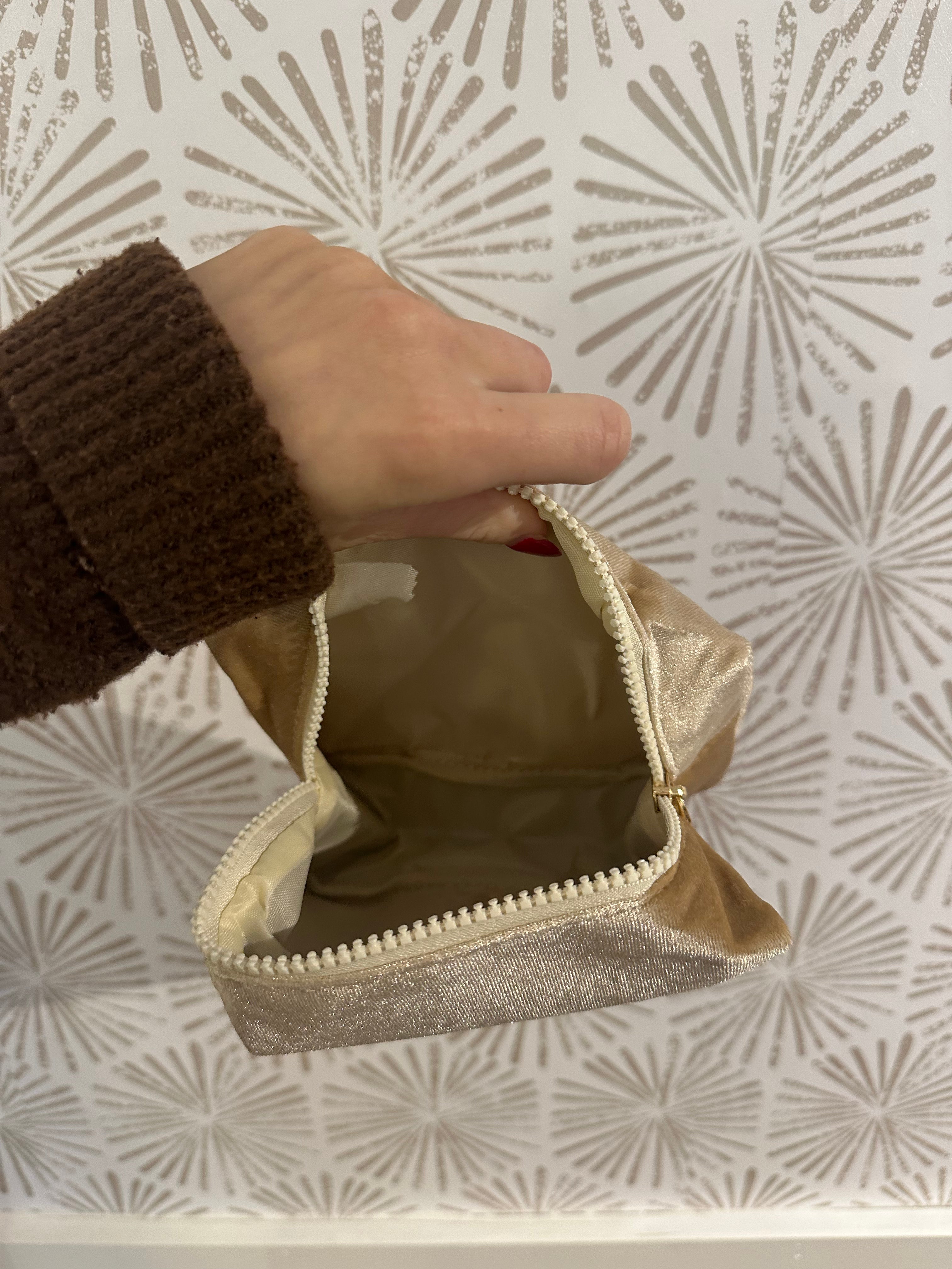 Perfect as a gift or a personal treat, this bag adds a little moment of luxury to everyday life. Use it as a makeup pouch, a toiletry case for travel, or even a small clutch for nights out—it’s versatile enough to fit any need. Pair it with a few self-care essentials or beauty favorites to create a thoughtful, ready-to-give present for birthdays, holidays, or just-because moments.
