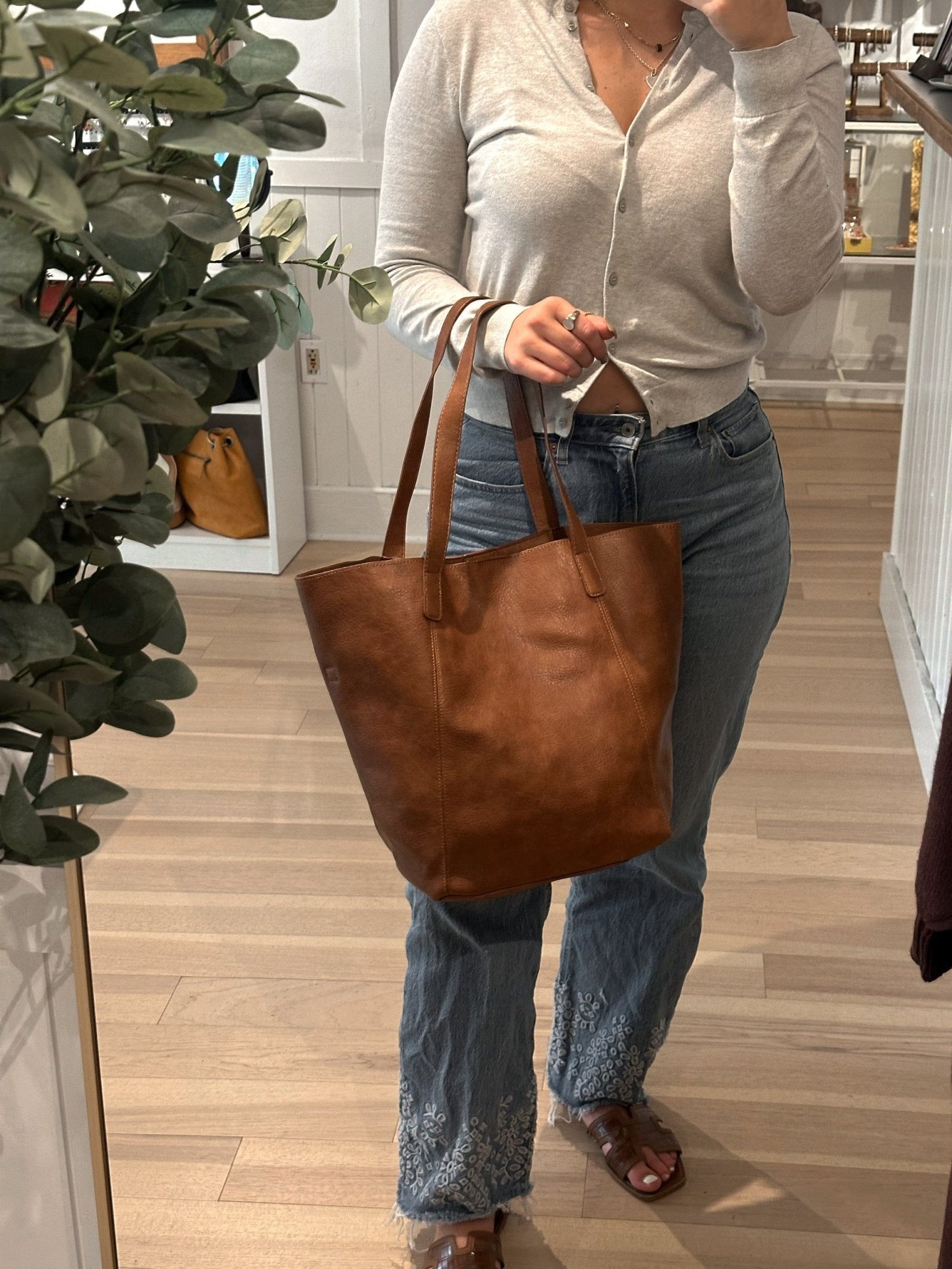 Two great bags in one! The Vida is a generously sized tote in a modern shape crafted in soft antiqued vegan leather. The bonus interior bag can be used as a storage pouch inside the tote or taken out and worn on its own as a crossbody bag with the included crossbody shoulder strap. In an array of beautiful colors, this tote is a great value with chic style!