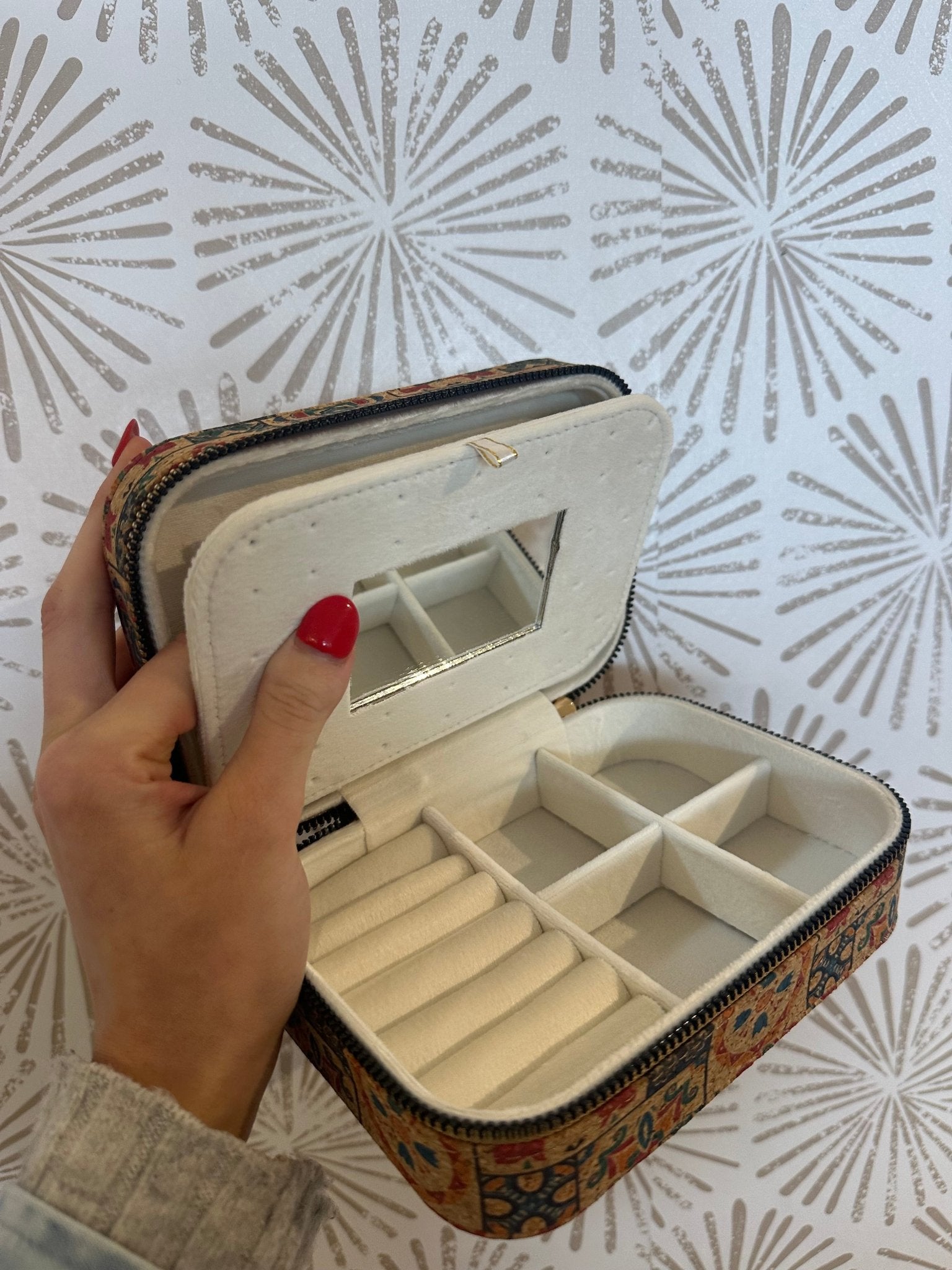 Elevate your jewelry organization with this charming, functional, and portable case—a perfect combination of style, practicality, and care. With the Vintage Floral Travel Jewelry Case, you can keep your treasured pieces secure while enjoying effortless portability and vintage-inspired elegance every day.
