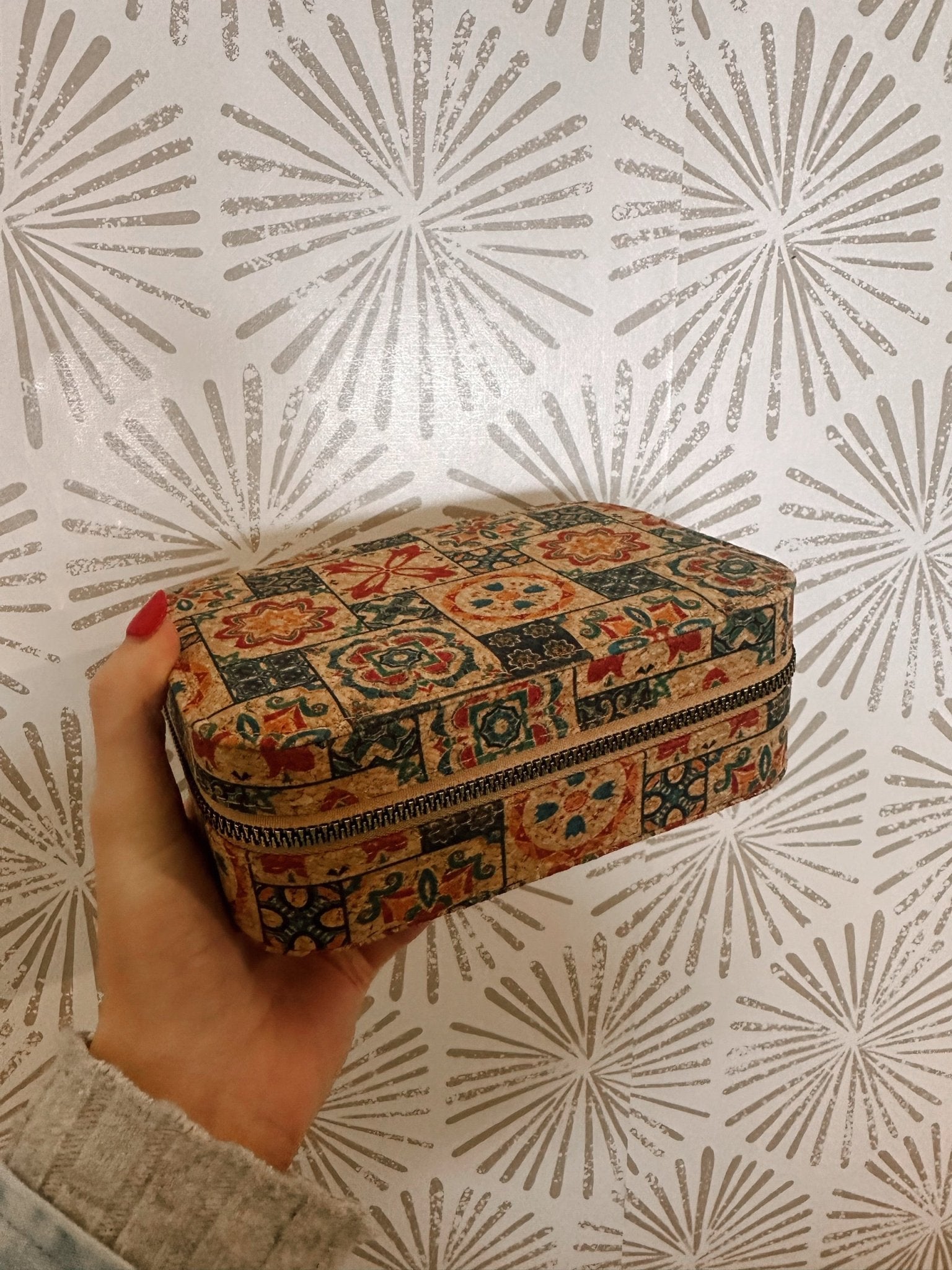 Crafted from durable cork material, the case is lightweight yet sturdy, weighing just 280 grams, making it easy to carry without adding unnecessary bulk to your bag or luggage. Its compact size of 17 x 11.8 x 6 cm ensures it fits comfortably in purses, backpacks, or suitcases, providing convenient access to your favorite pieces wherever you are. The zipper closure keeps everything securely contained, preventing jewelry from falling out or getting tangled during transit.