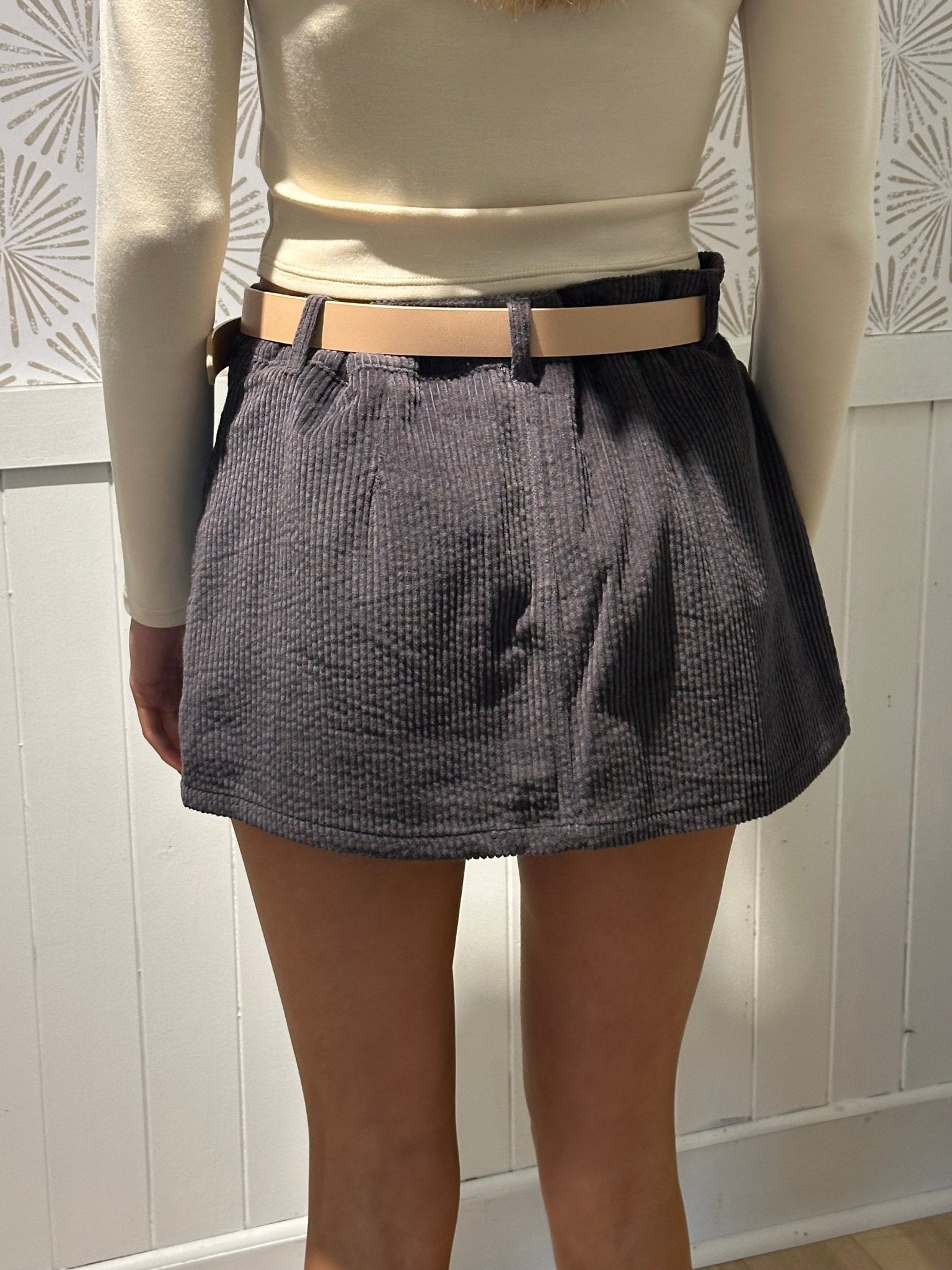 The rich corduroy texture adds a subtle depth and visual interest to the skort, giving it a sophisticated edge while maintaining a relaxed, approachable feel. Corduroy’s natural durability ensures that this skort holds its shape and texture over time, while the 100% cotton fabric keeps it soft against the skin, breathable, and comfortable for long wear. Its classic design and neutral smokey color make it easy to pair with a variety of tops, jackets, and footwear, providing endless styling opportunities.