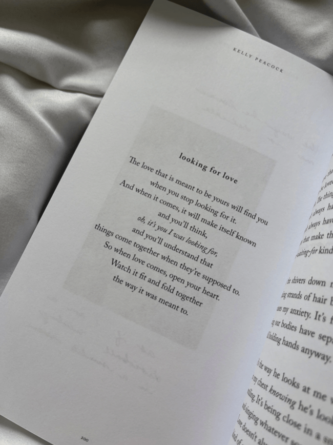 This book is written for the ones who romanticize moments and people, who hold onto feelings long after the moment has passed, and who find meaning in the smallest details. Peacock’s words capture that delicate in-between space where longing and hope coexist, where vulnerability becomes both a challenge and a strength. Each piece feels intimate and reflective, as if it was written for the reader alone.