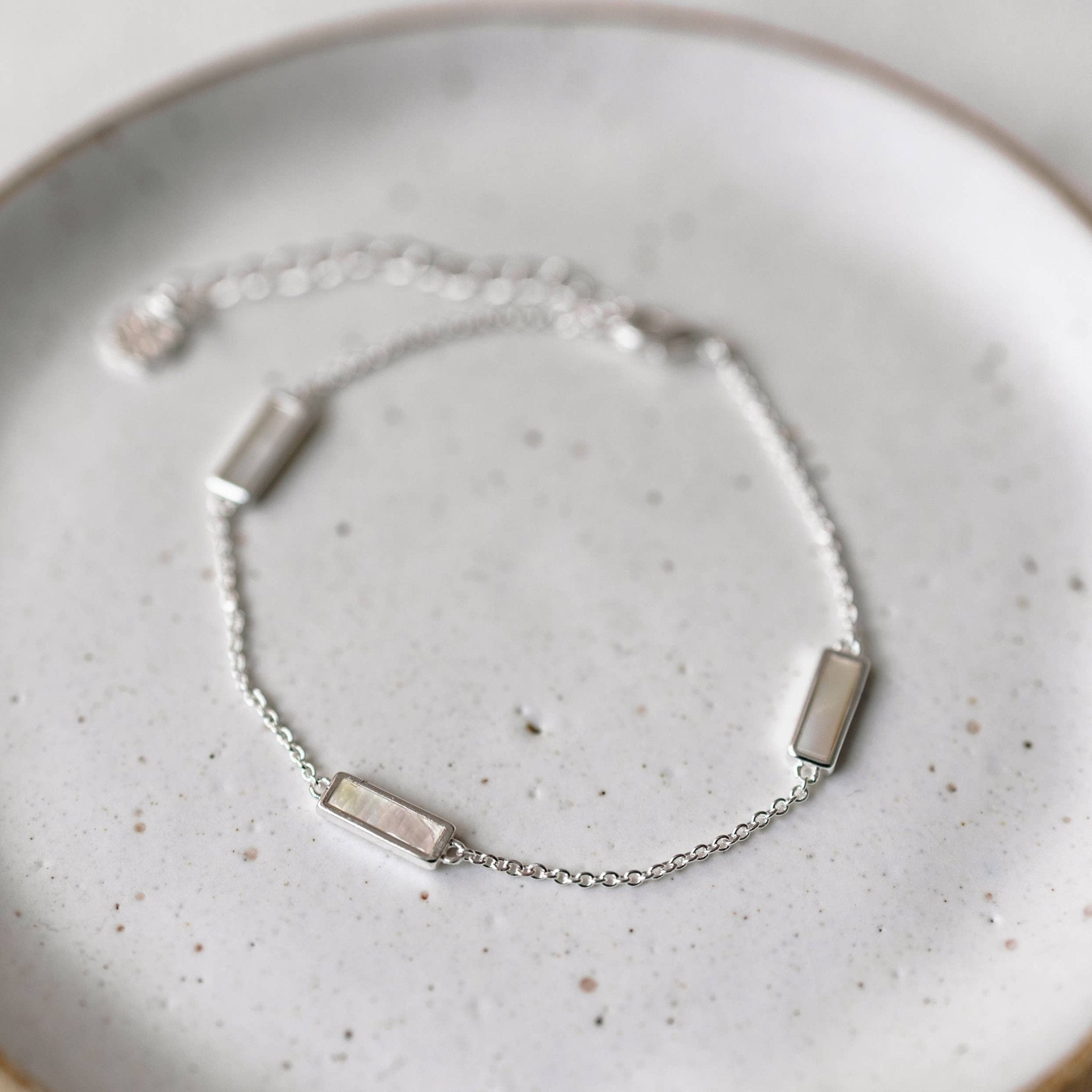 Details: - made with natural mother of pearl - gold or silver plated - hypoallergenic; nickel/lead free - anti-tarnish coated *Also available as 17" & 32" necklaces