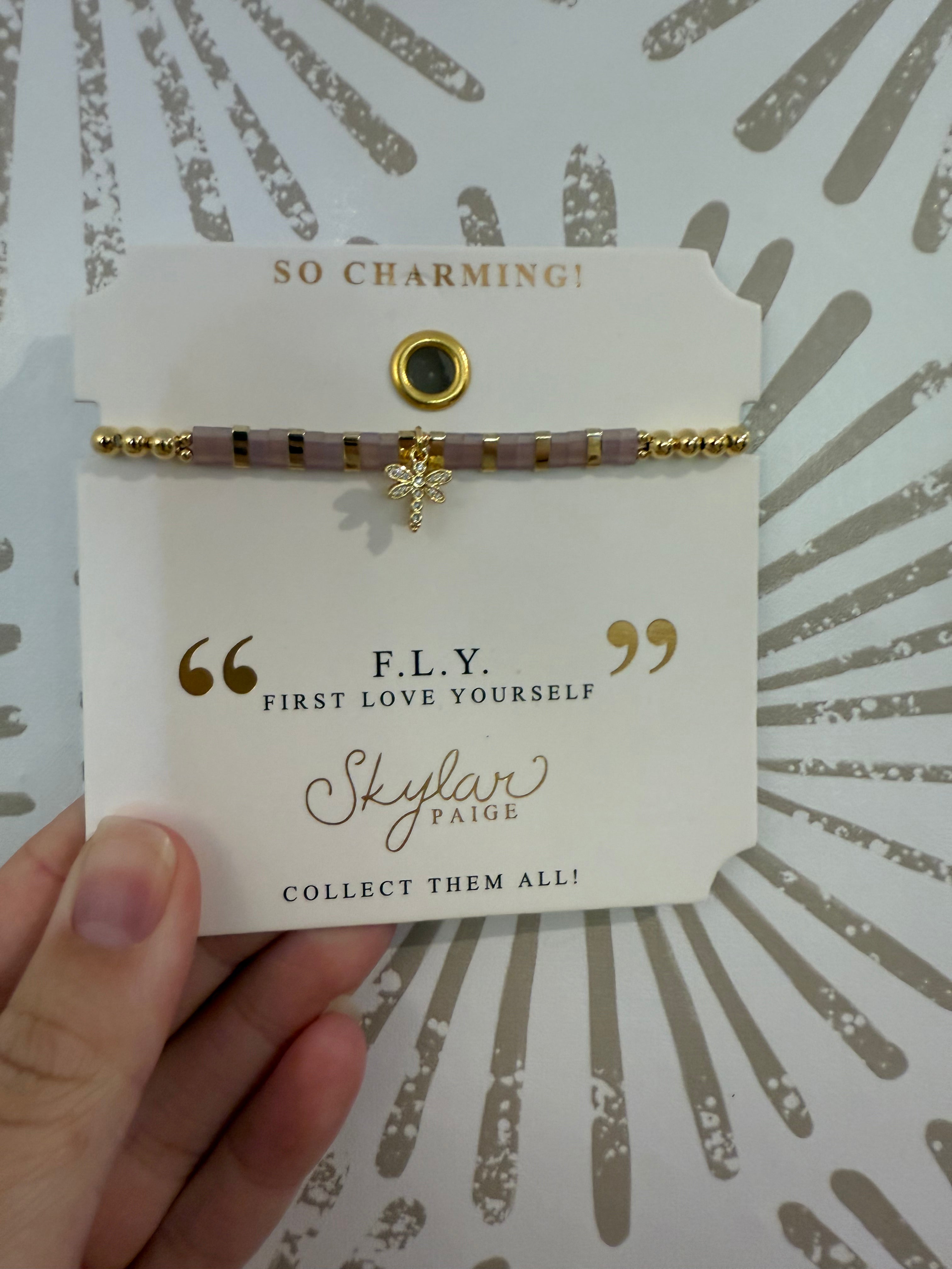 So Charming! Beaded Dragonfly Bracelet, Gold
