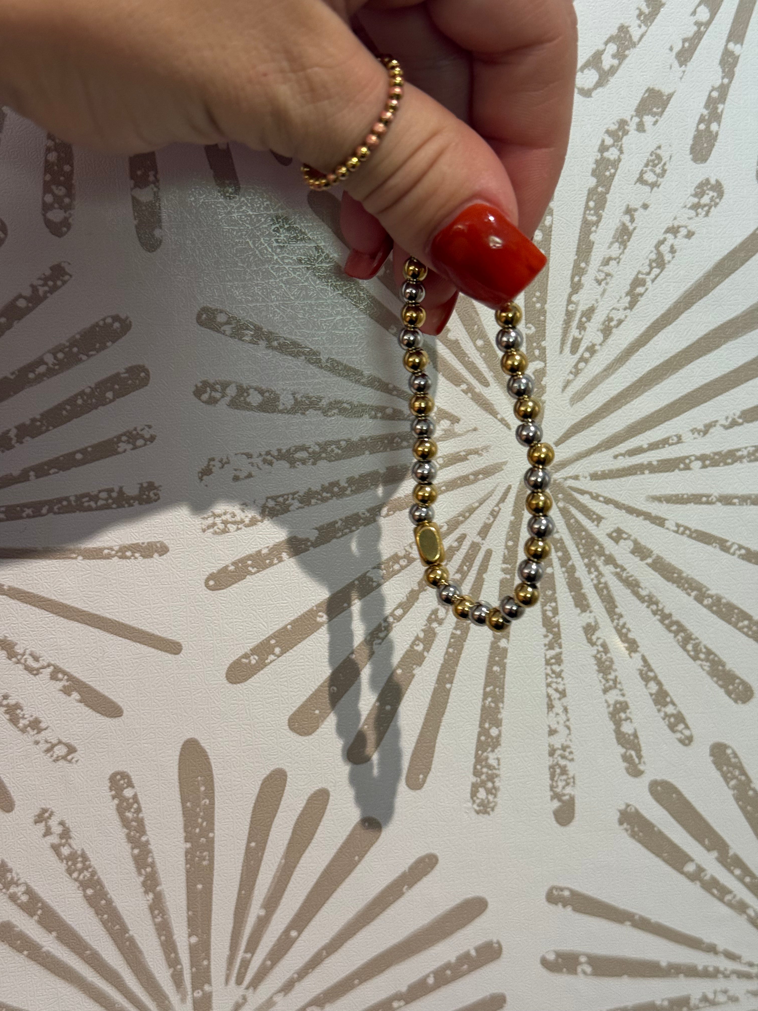 Two two, alternating silver and gold beaded bracelet, waterproof