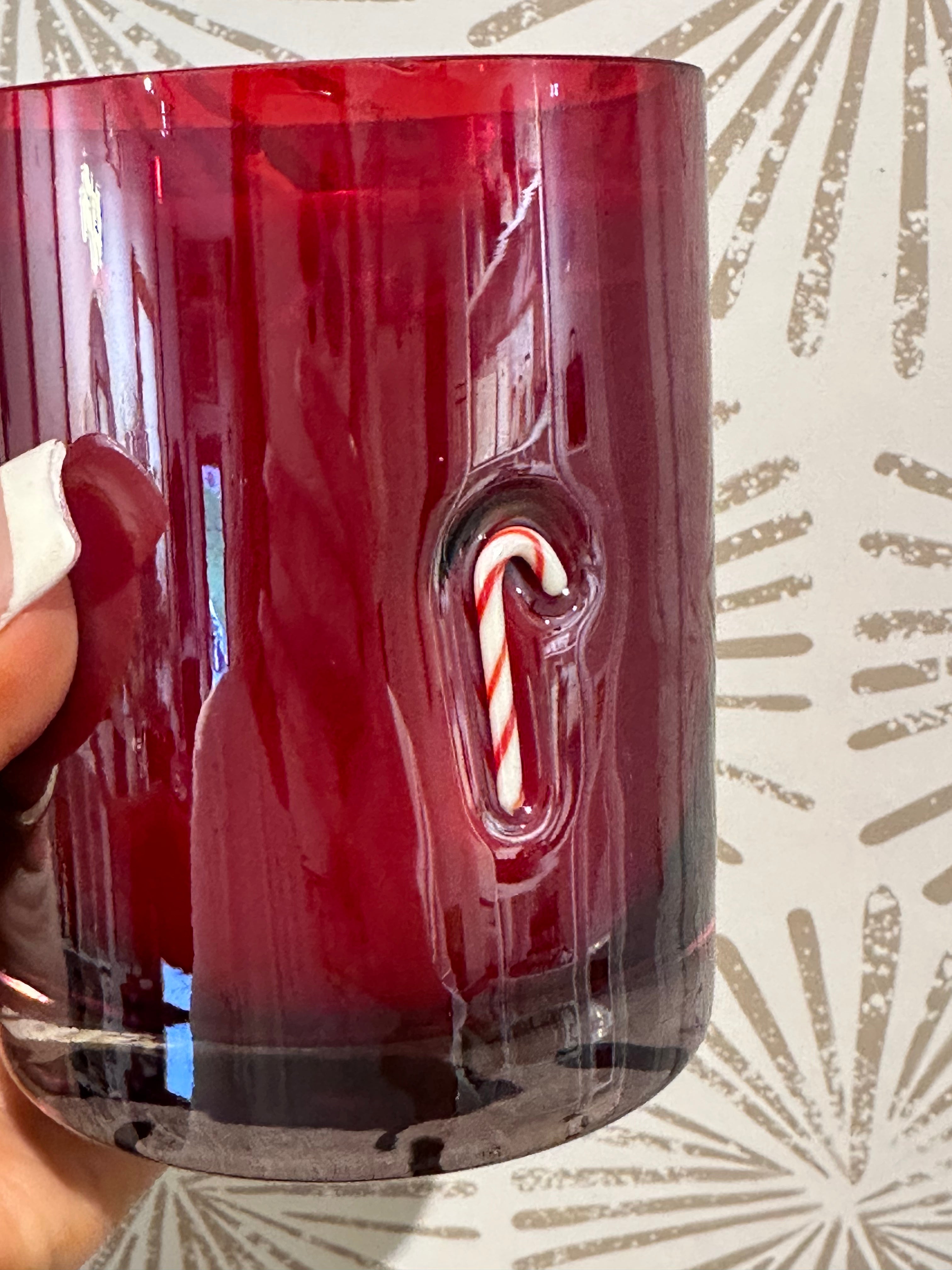 The red glass vessel, complete with its candy cane patch, offers a cheerful, festive aesthetic that fits seamlessly into classic, modern, or whimsical Christmas décor. Its vibrant color catches the light beautifully, adding a warm glow to any room. The candy cane patch adds a handcrafted charm, making this candle a standout decorative accent during the holiday season.