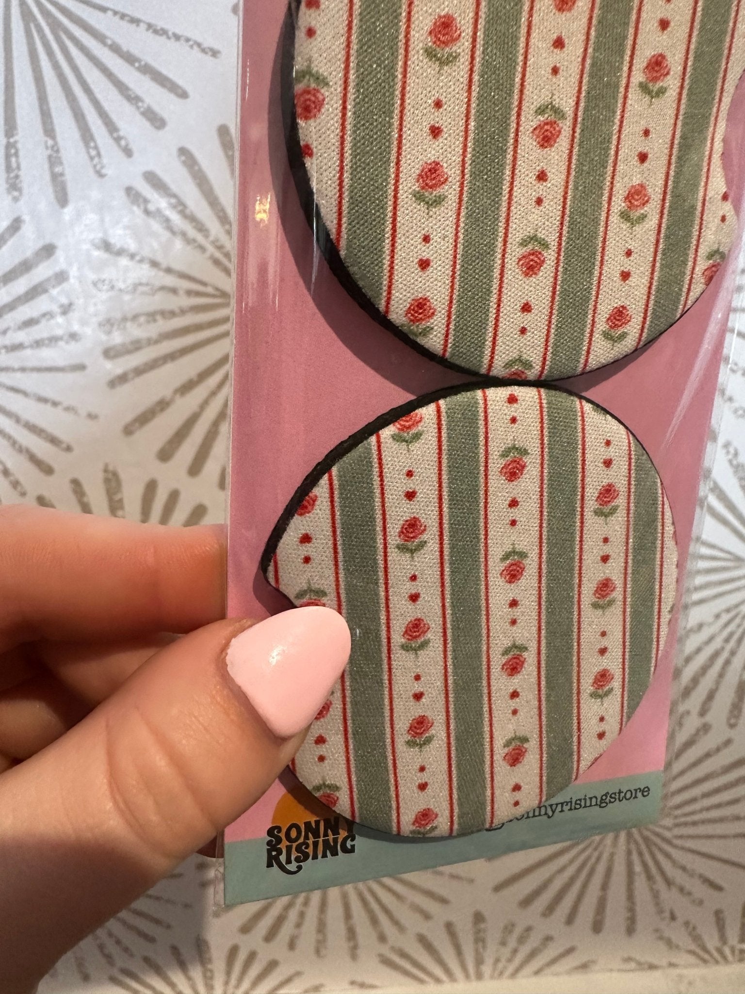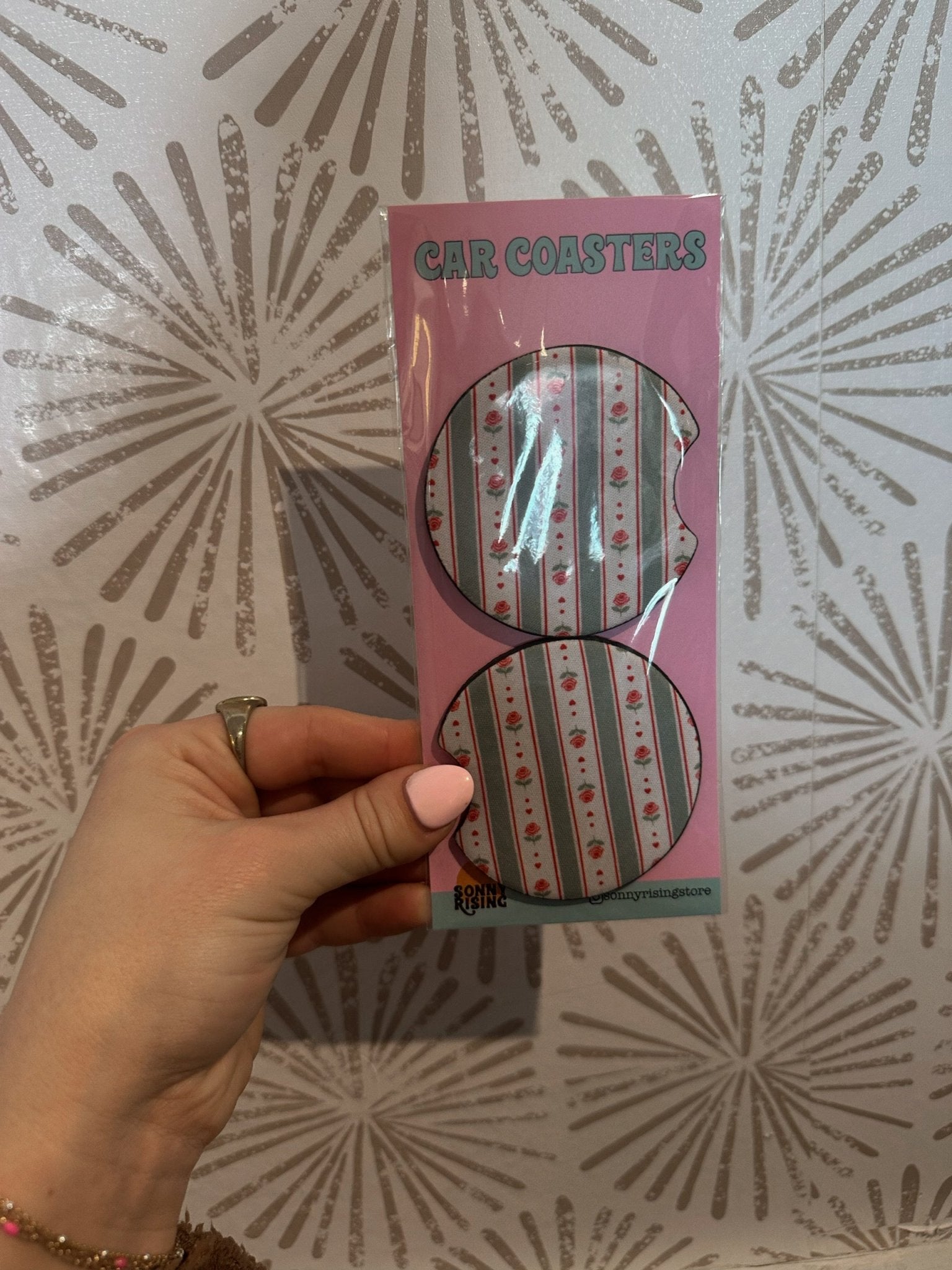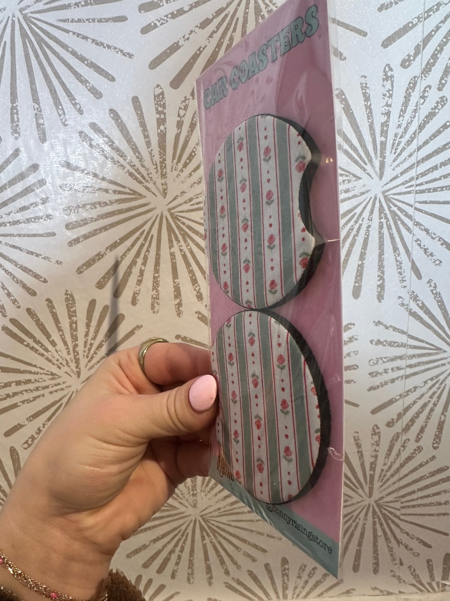 Includes 1 pair (2 total) car coasters