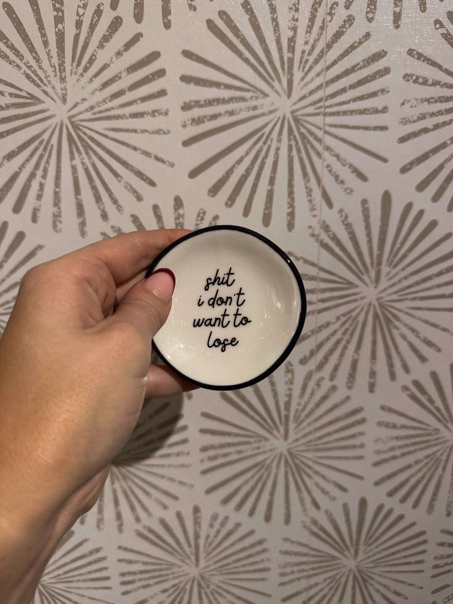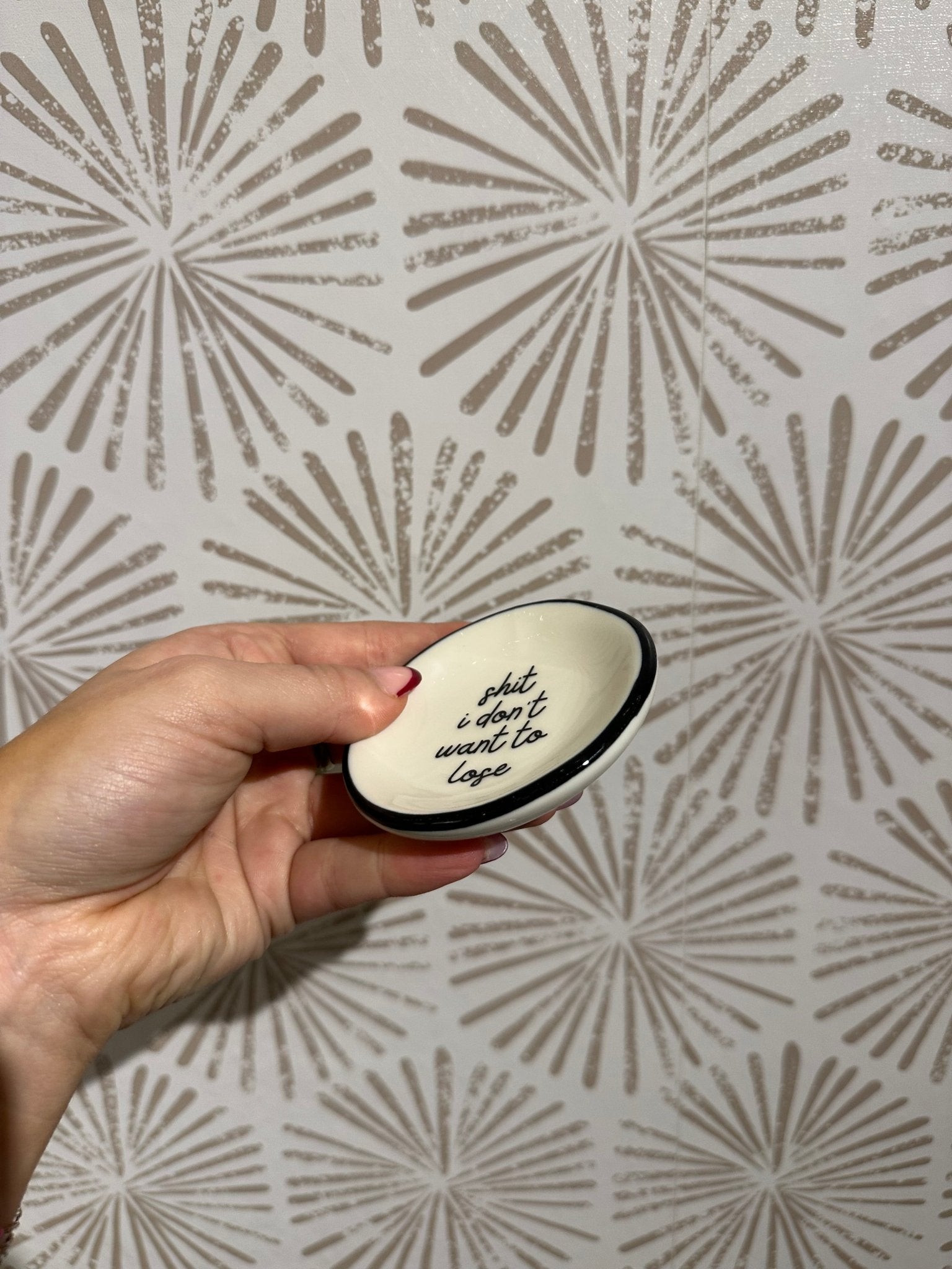 The petite size makes it incredibly versatile. Place it on your nightstand to keep rings secure overnight, on your vanity for daily jewelry rotation, or on your bathroom counter for a convenient, clutter-free solution. It also works beautifully on a desk or entryway table for holding spare change, hair pins, or other tiny essentials you don’t want rolling away or disappearing altogether. Wherever it lives, it quietly does its job—keeping your little things safe and easy to find.