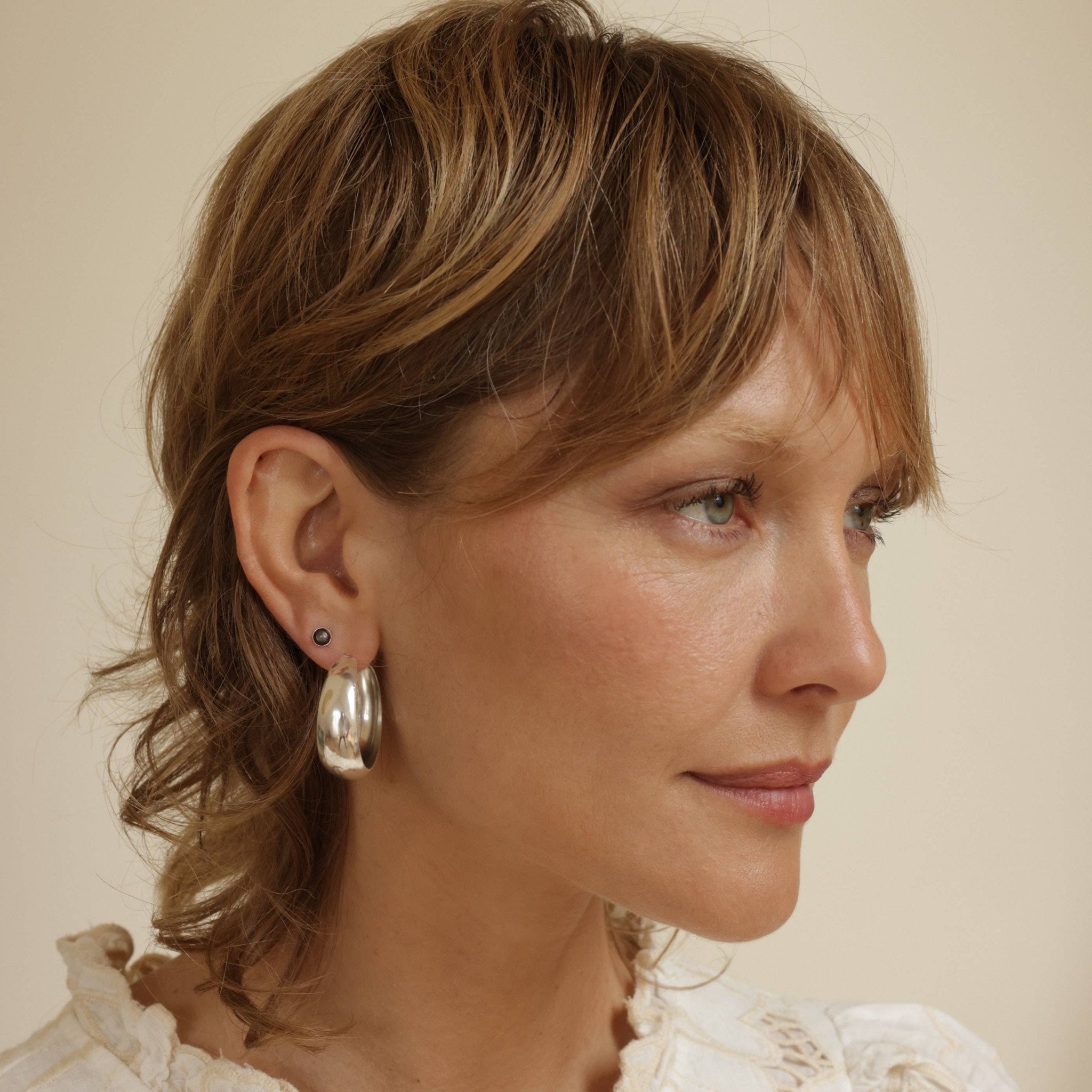 These lightweight, easy to wear large, chunky, vintage hoops were created with the original molds from the 70's. We offer them in 1.25" diameter and 1" diameter for a slightly more conservative look.