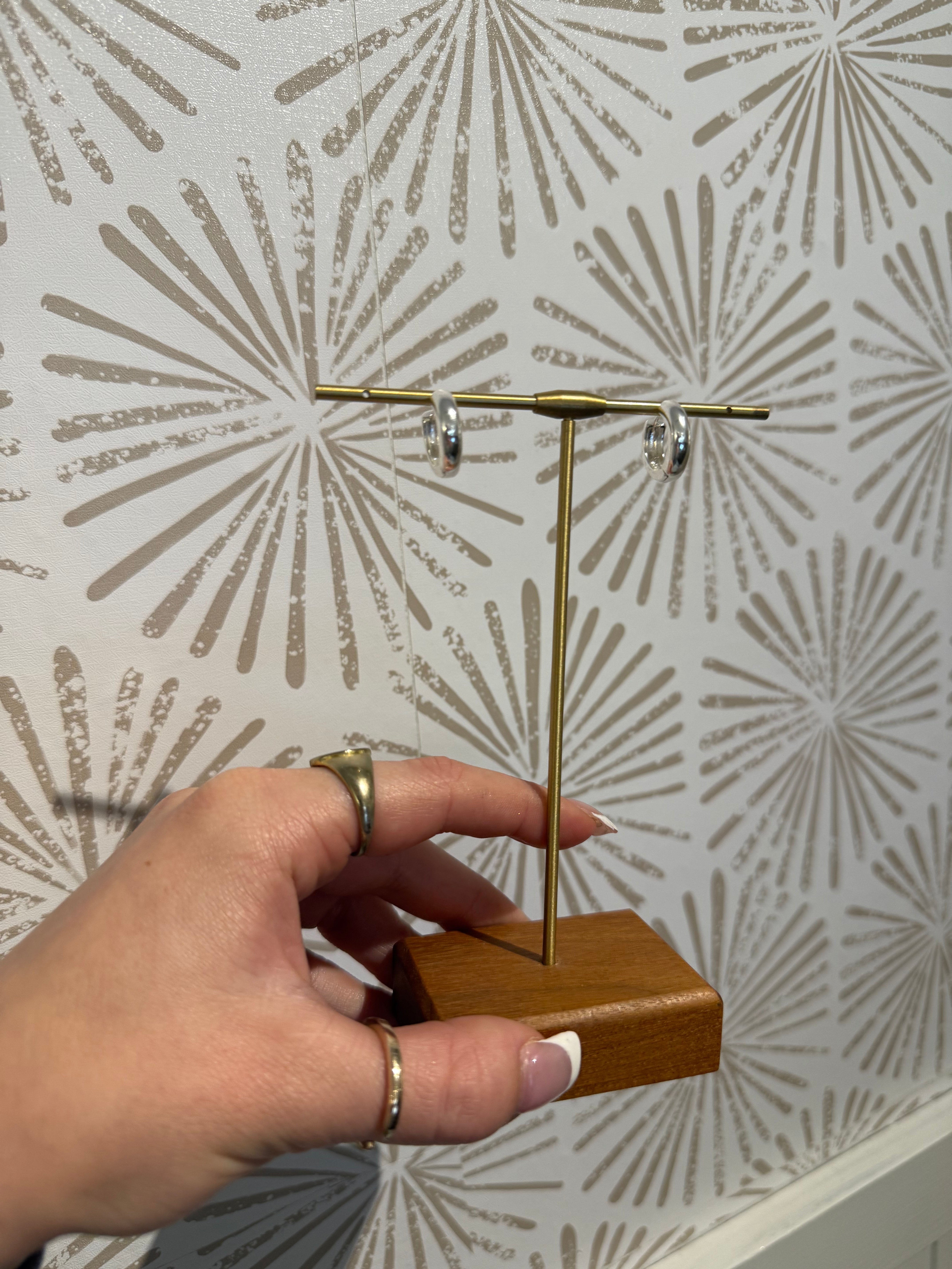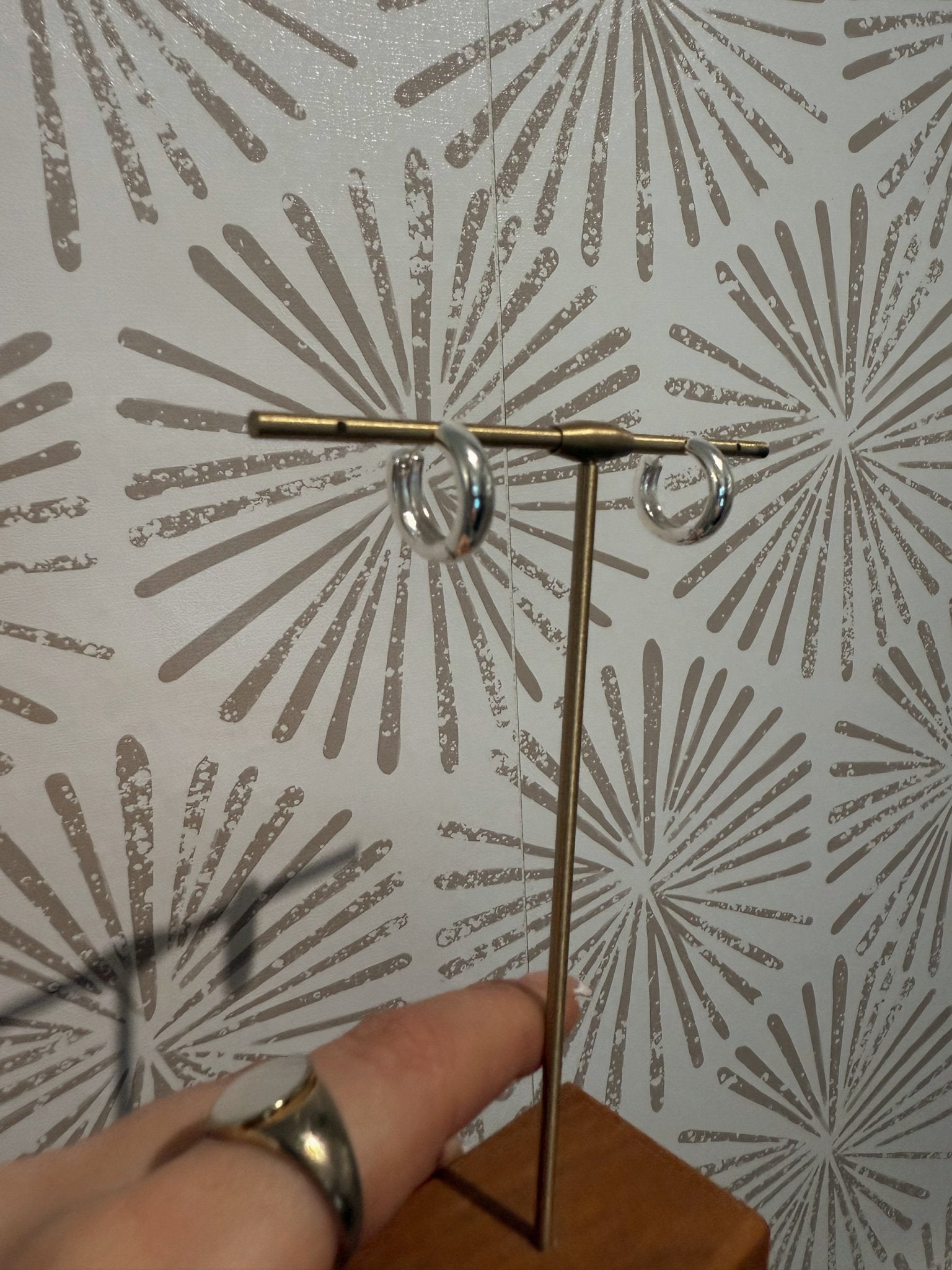 The standout feature of these earrings is their sleek, polished finish, which catches the light beautifully, adding just the right amount of shine without being overpowering. The silver-plated brass construction ensures durability while providing a radiant metallic finish that flatters all skin tones. At 0.75″ in diameter, these hoops strike the perfect balance: large enough to be noticed yet compact enough for comfortable, everyday wear.