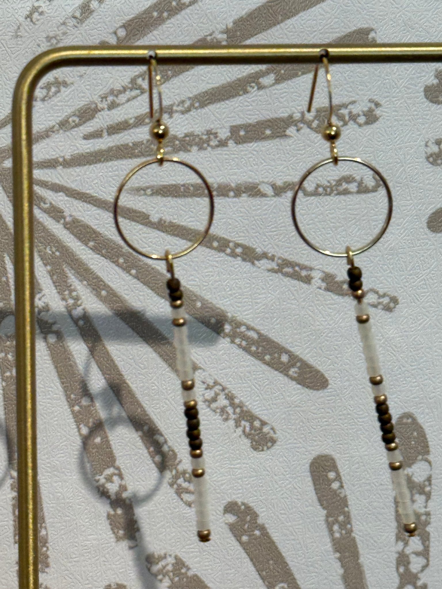 Materials: Gold-tone hoops adorned with colorful seed beads