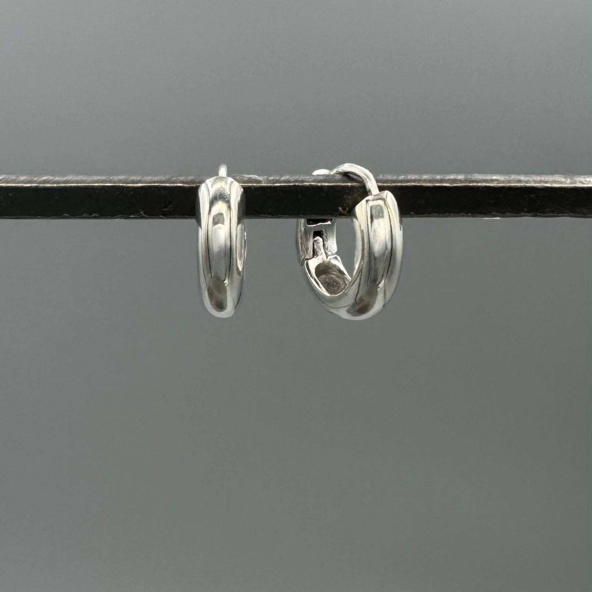 Silver 15mm Polished Clicker Huggies These high-polish chubby clicker tube huggie hoops are great for any occasion. .925 Sterling Silver. 15 x 4 x 2mm hoops