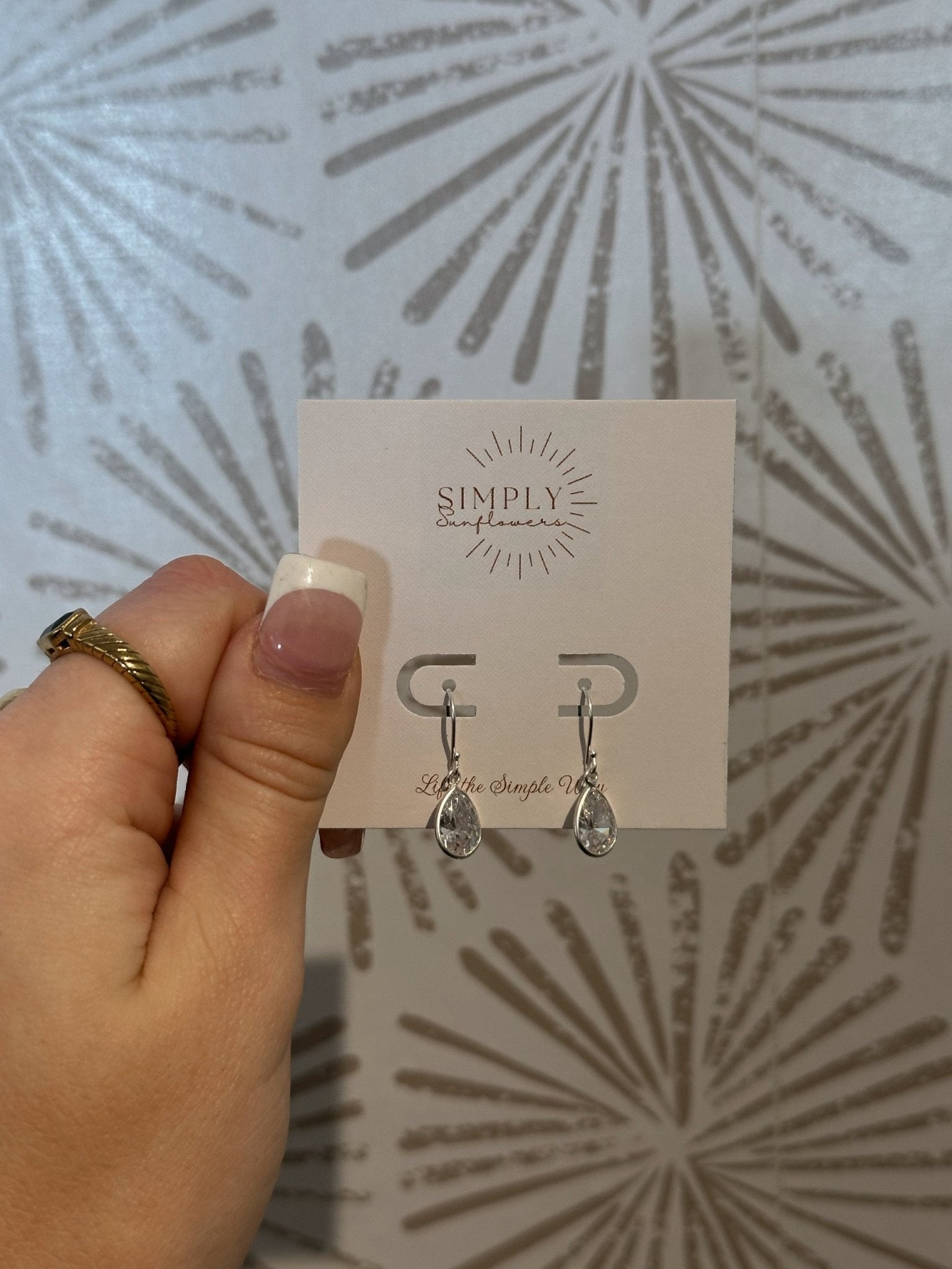 Each pair begins with .925 sterling silver ear wires, known for their durability, hypoallergenic comfort, and signature cool-toned shine. Sterling silver is a favorite for its lasting resilience and ability to catch the light beautifully, making it the perfect foundation for a piece that is meant to sparkle. Suspended from these wires is the highlight of the design: a stunning, clear cubic zirconia teardrop that radiates brilliance with every movement. The CZ stone is meticulously cut to reflect light from multiple angles, mimicking the look of a high-quality diamond while offering exceptional clarity and shimmer.
