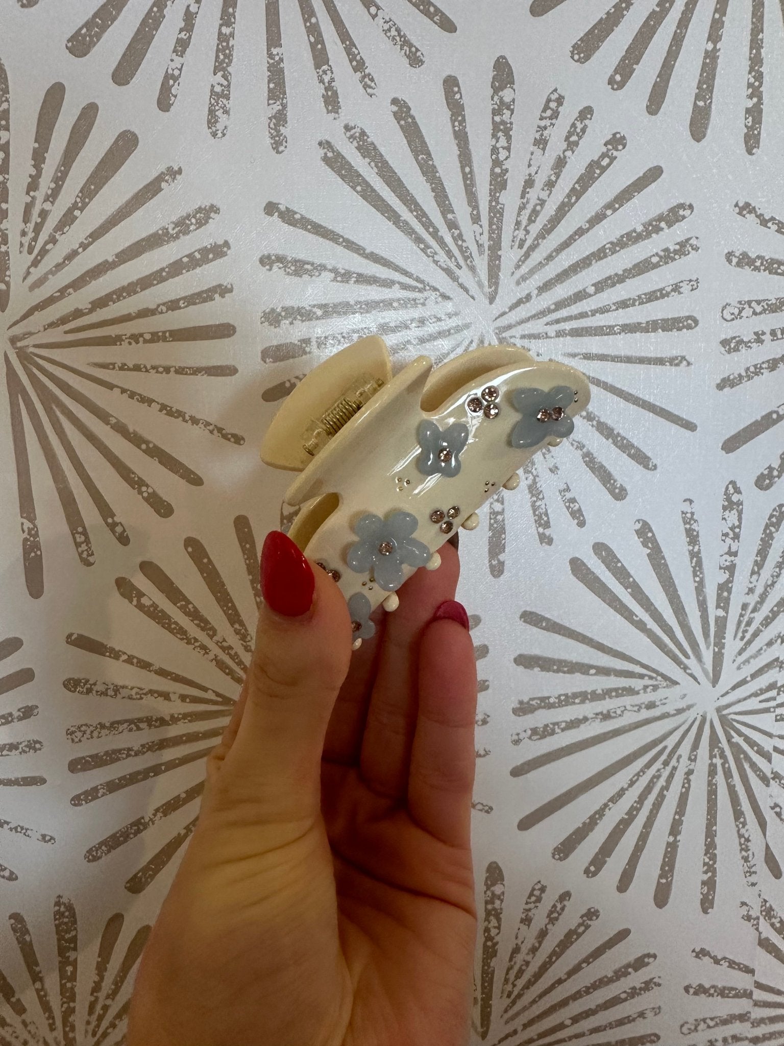 The Butterfly Claw Clip is a charming and elegant hair accessory designed to bring a touch of whimsy and sophistication to any hairstyle. Featuring a delicate butterfly design adorned with subtle floral patterns and sparkling rhinestones, this clip combines playful sweetness with timeless style. It’s perfect for adding a graceful accent to everyday looks or dressing up your hair for special occasions.
