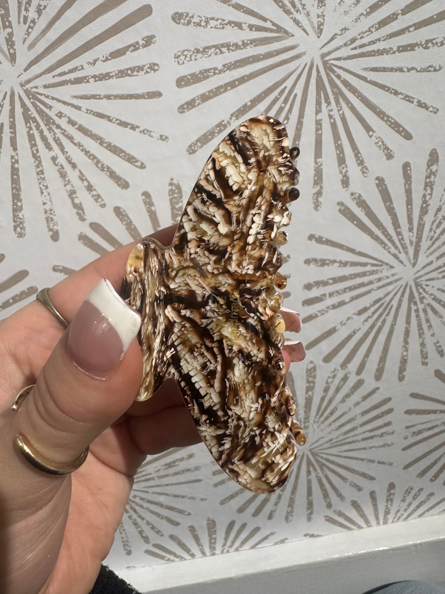 The clip’s signature feature is its vibrant multicolor design, inspired by the rich textures and flowing tones of classic oil paintings. Each swirl of color creates a unique, eye-catching accessory that can complement any outfit, from simple jeans-and-tee ensembles to more dressed-up looks. The combination of playful color and elegant form makes it a versatile accessory that customers can reach for repeatedly, whether adding a subtle pop to a casual hairstyle or creating a bold focal point for a more refined look.
