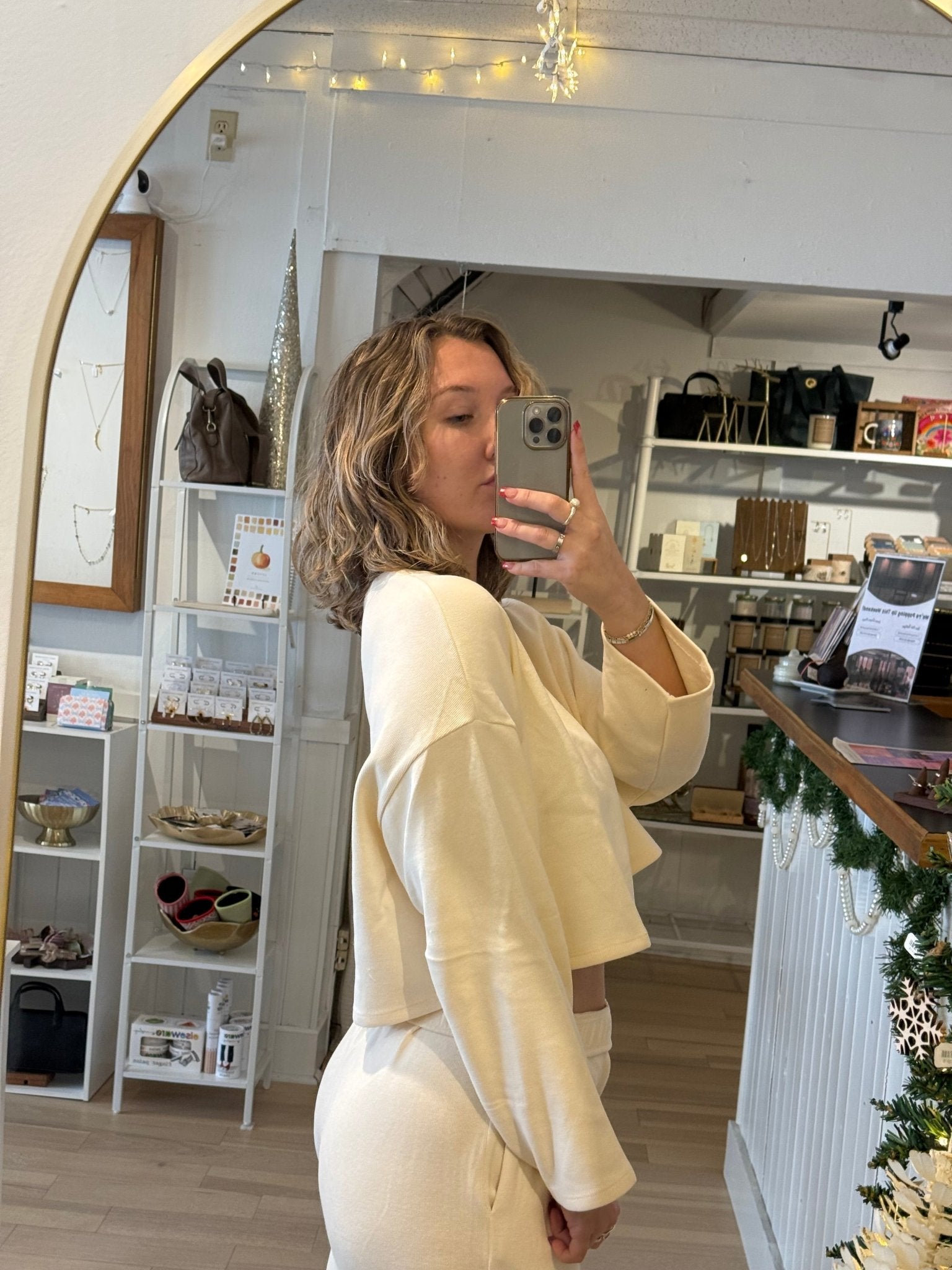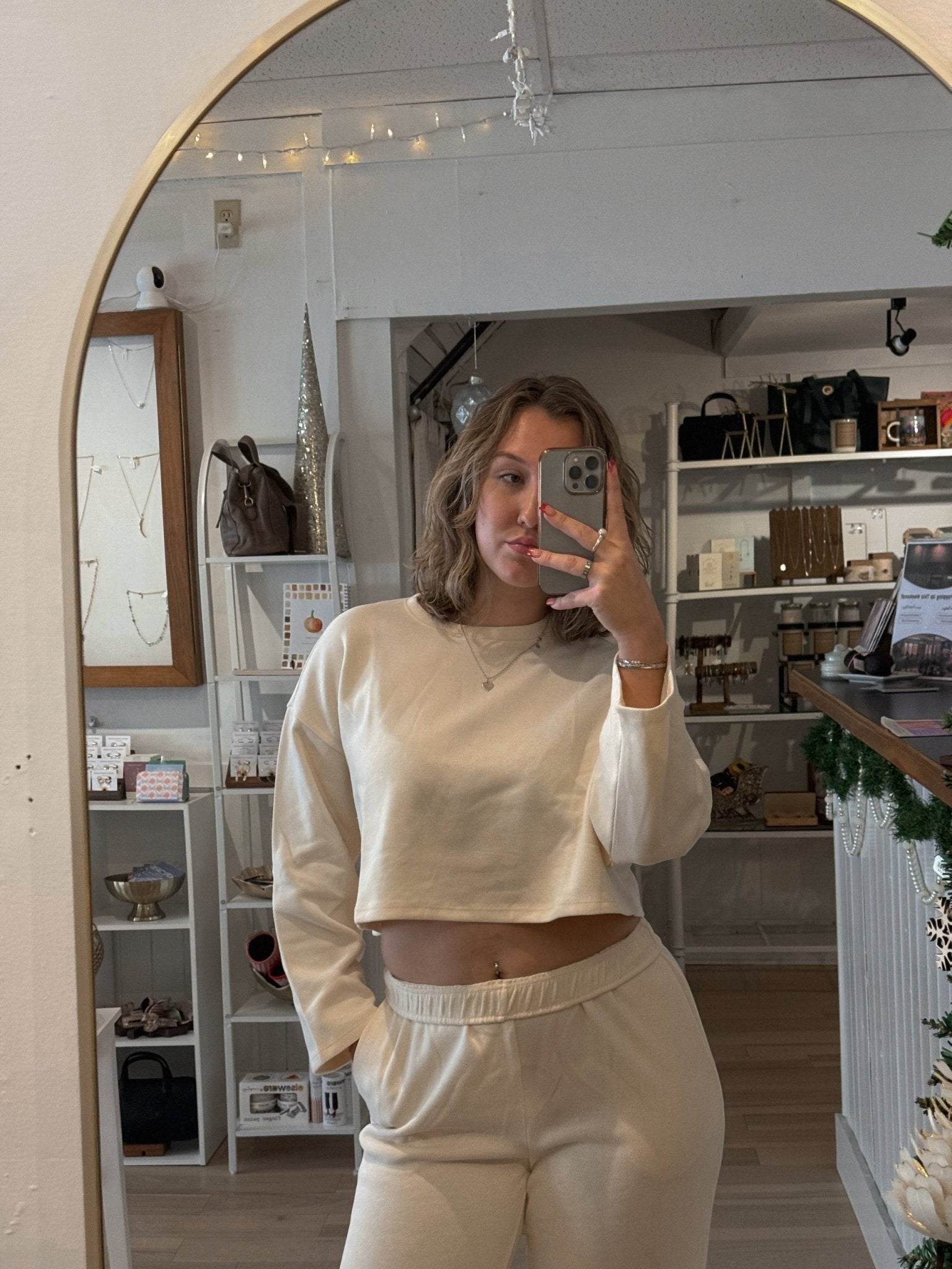 The Snowy Morning Crewneck is a cozy, contemporary addition to your winter wardrobe. Its cropped design, plush fabric, and neutral cream color make it perfect for layering, lounging, or pairing with the matching wide-leg sweatpants for an elevated coordinated look. Soft, warm, and effortlessly chic, this crewneck embodies the perfect balance of comfort and modern style.