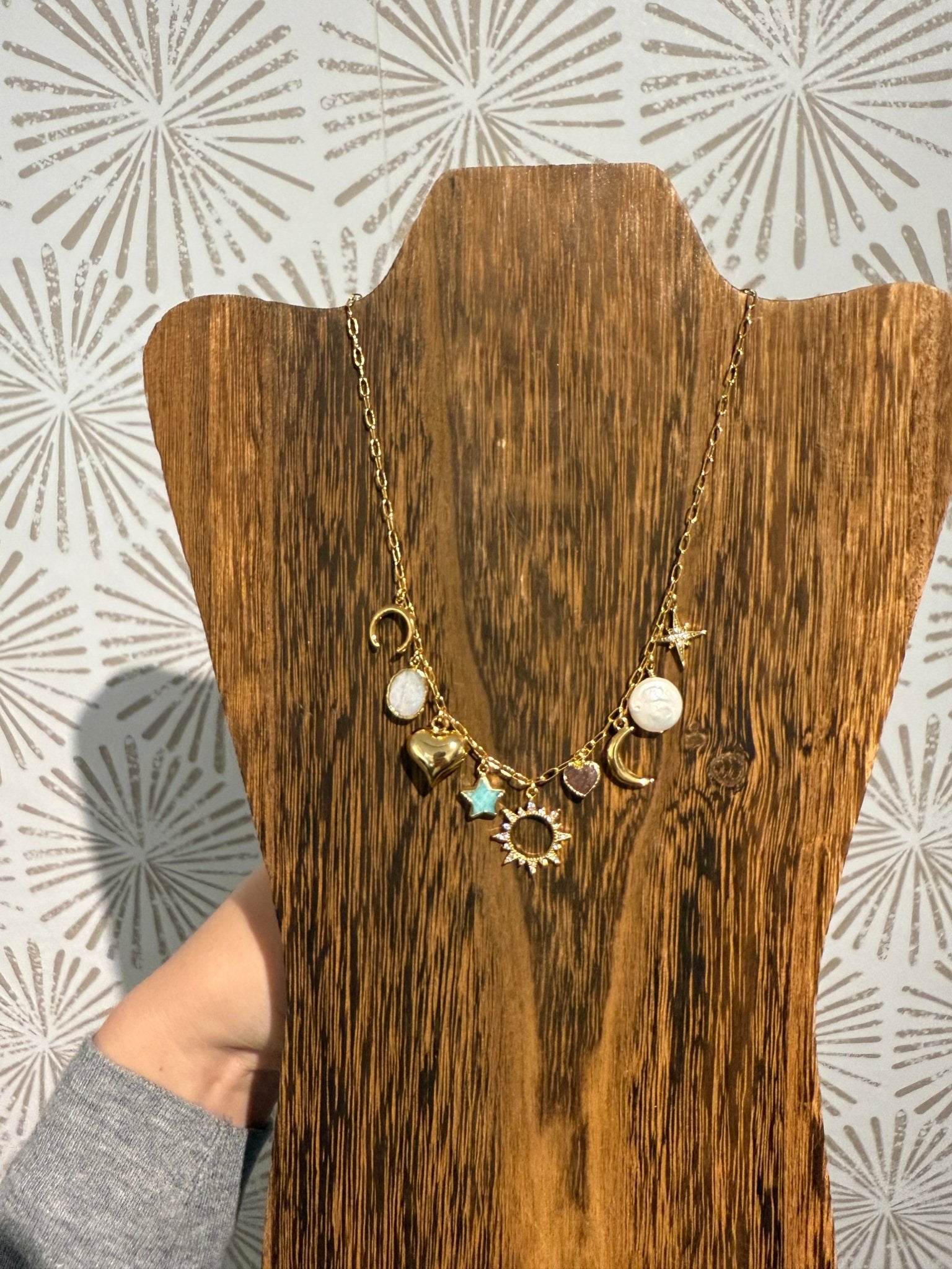Perfect for the collector who loves a touch of magic, the trend-setter drawn to celestial motifs, or the boho-spirited soul who delights in color and texture, this necklace is a keepsake that brings personality and charm to any jewelry lineup.
