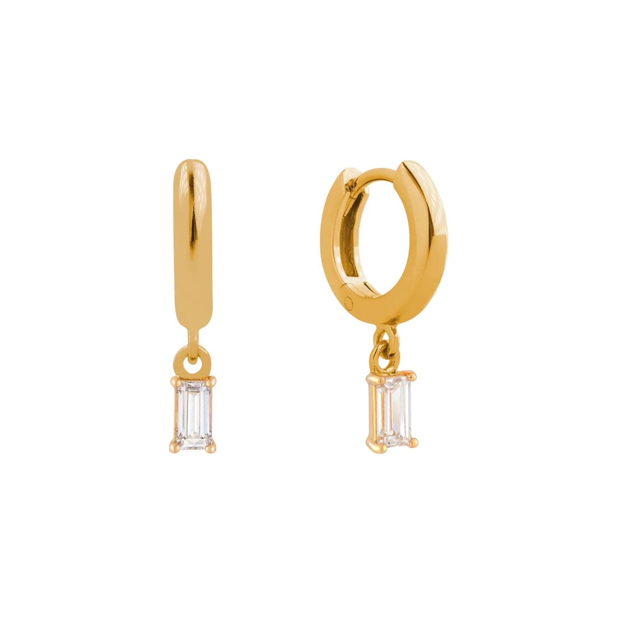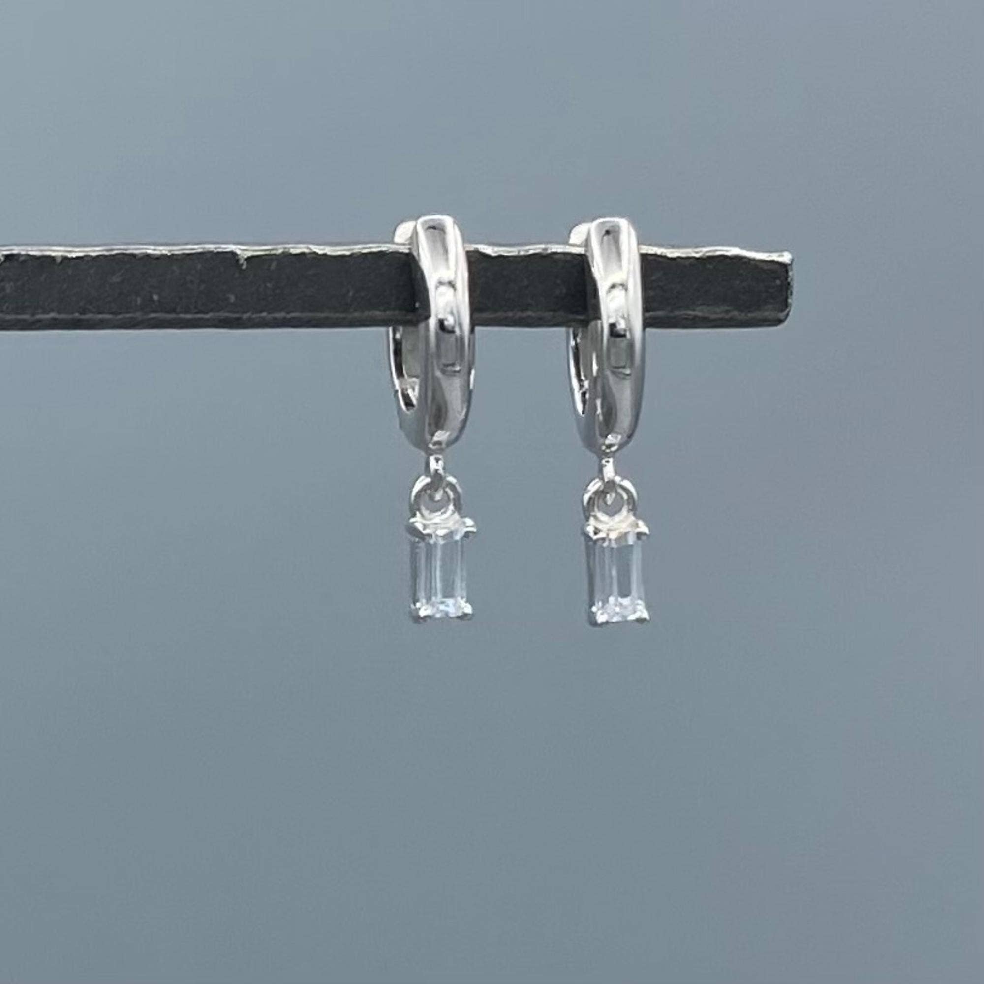 CZ Baguette Drop Huggie Hoops .925 Sterling Silver or Gold-filled 10.5 Inch Hoops/ 4.5mm Stone Product is packaged on hanging card