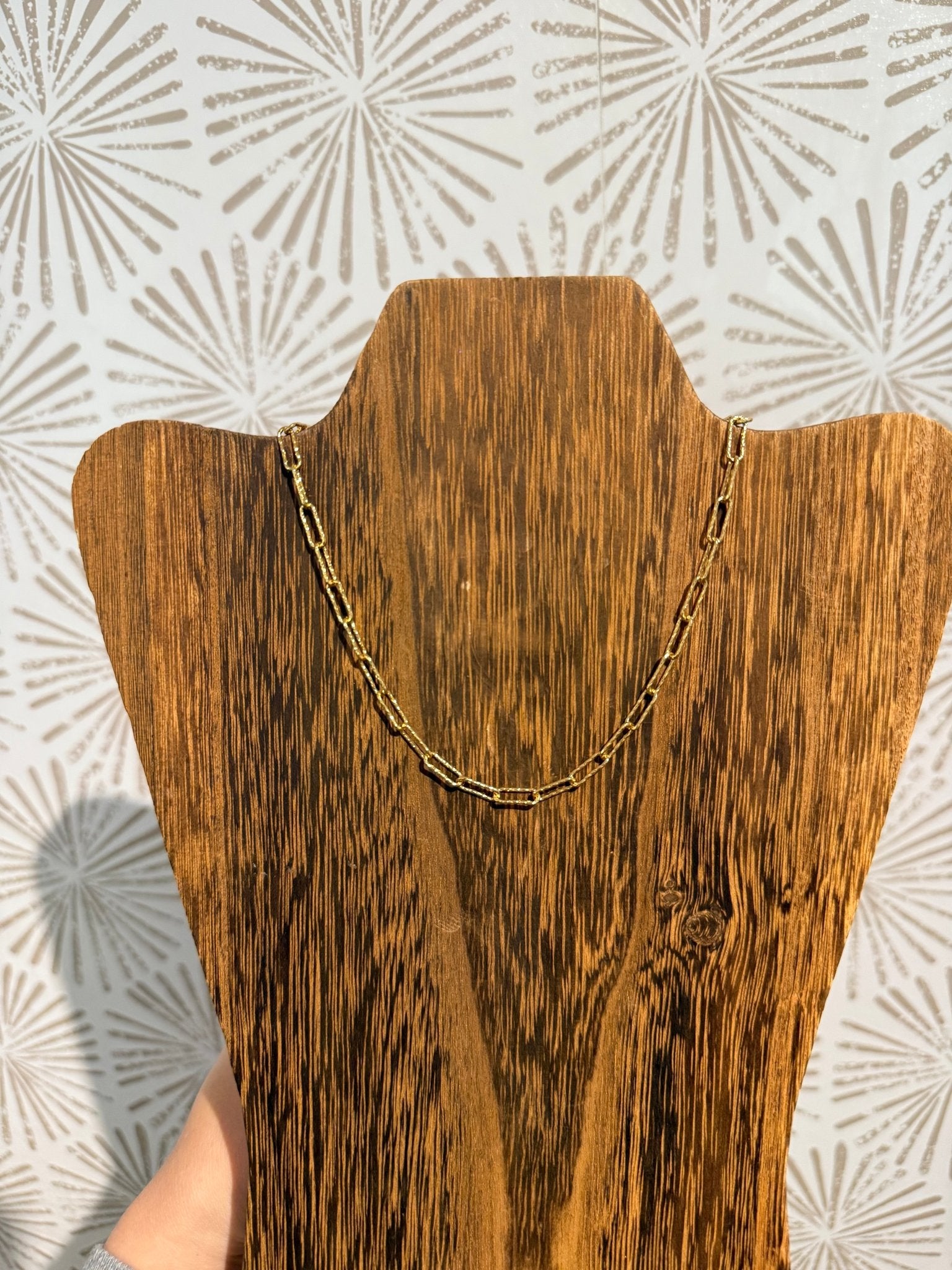 Elevate your boutique collection with the Braided Twist Paperclip Chain, a modern take on a timeless design. Its intricate braided twist texture adds dimension and sophistication, transforming the classic paperclip chain into a bold yet lightweight statement piece. Designed for comfort and style, this chain is perfect for all-day wear and effortlessly complements a variety of looks.