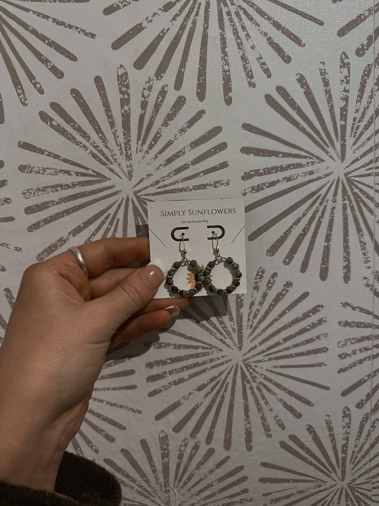 These nature-inspired loop earrings are crafted for those who feel connected to the earth, drawn to organic beauty, and inspired by jewelry that carries a sense of grounding and serenity. Each pair features a thoughtful selection of natural stone beads—each one uniquely patterned by time and nature—creating a rich visual landscape within the simple circular frame. These stones bring depth and character to the design, blending softly marbled neutrals, muted greens, or earthy tones that feel both calming and captivating.