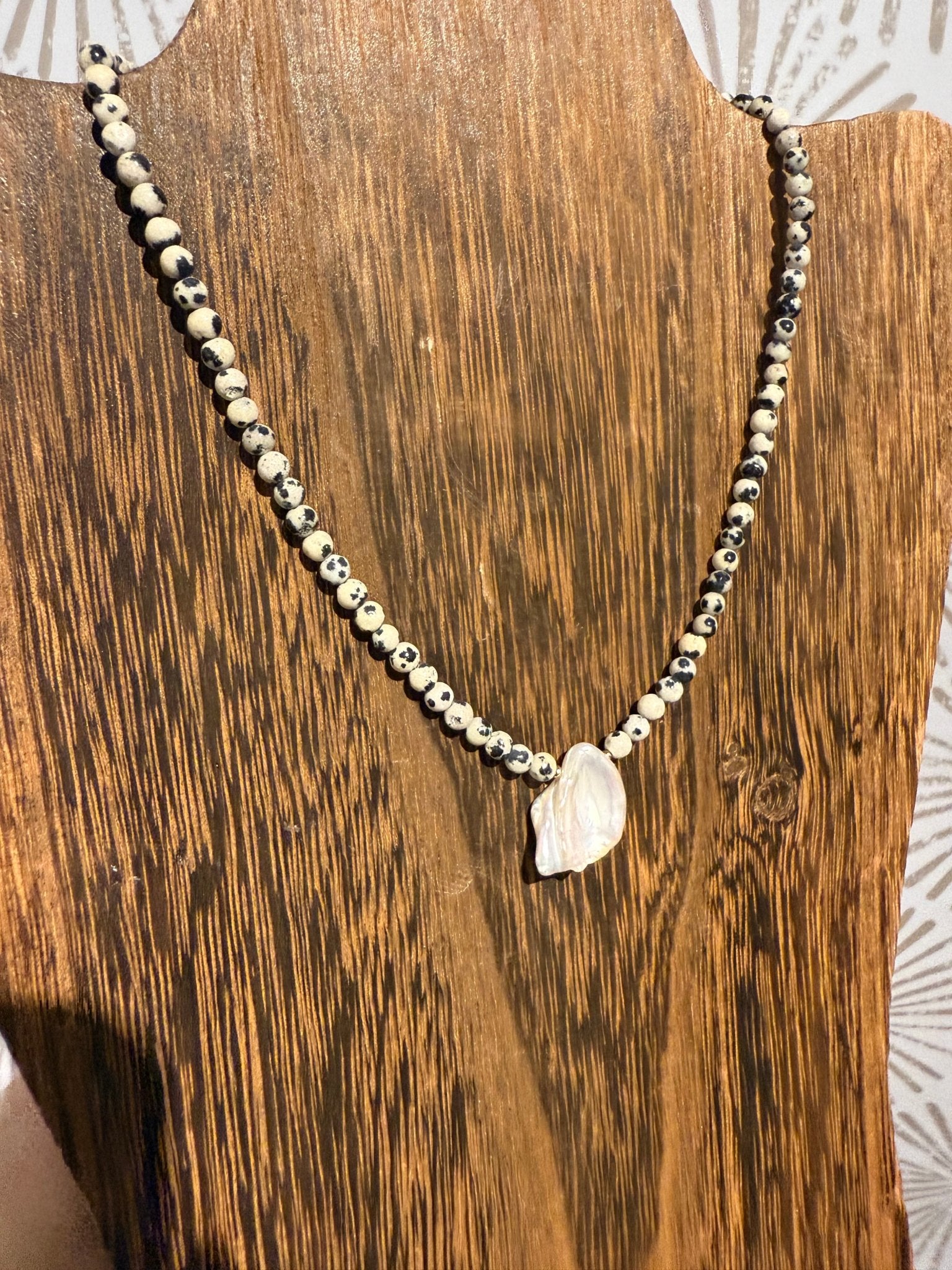 Stones: Genuine Dalmatian Jasper + Genuine Keshi Pearl Pendant