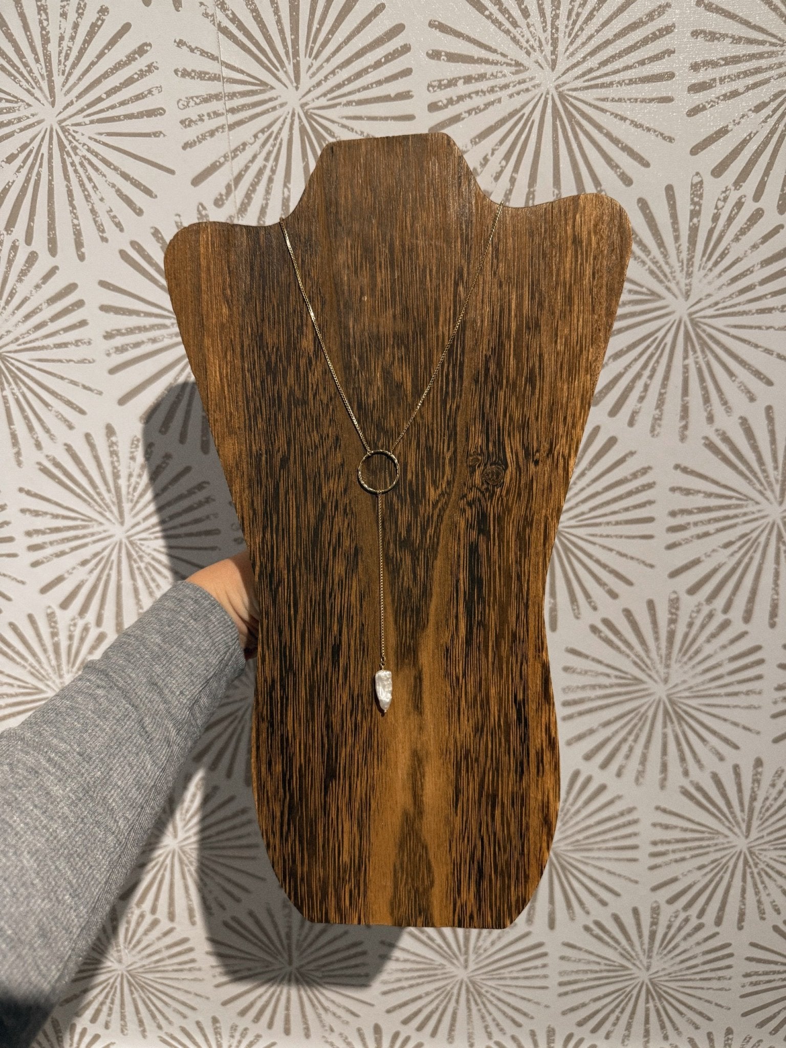 The combination of modern lines and classic materials makes this piece especially appealing for customers who value understated luxury. Its simplicity ensures it pairs effortlessly with other jewelry—gold chains, gemstone strands, or minimalist chokers—yet it still maintains enough presence to shine on its own. The drop design adds a subtle elongating effect, flattering the neckline and creating an elegant, polished finish to any outfit.