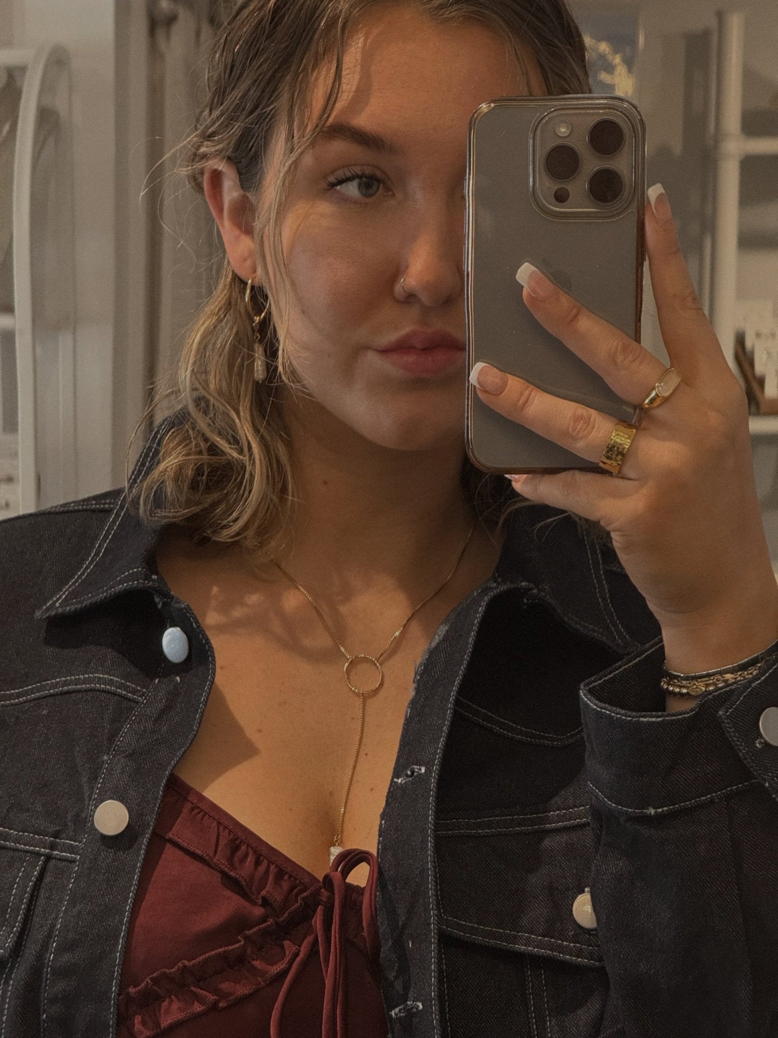 This beautifully detailed necklace is crafted to offer a harmonious balance of sophistication, texture, and subtle movement. The design begins with a classic gold-plated hoop—lightweight yet durable—measuring ¾″ in diameter. From it, a slender drop chain extends three inches, drawing the eye downward in an elegant vertical line. At the end of this chain rests a genuine cultured freshwater pearl measuring ¾″, chosen for its soft, organic shape and natural luster. Every component has been thoughtfully selected to create a piece that is both visually appealing and easy to wear.