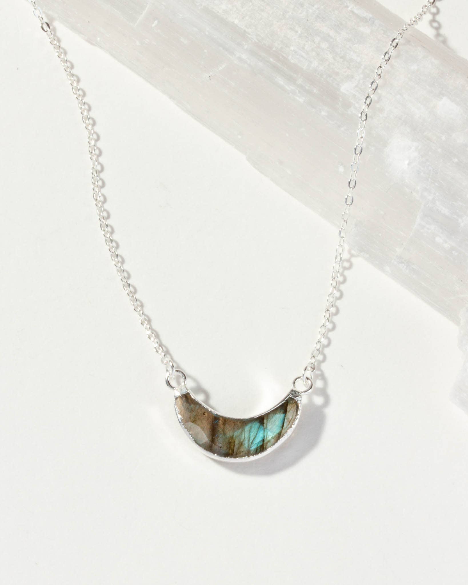 The Crescent Moon Labradorite Necklace is more than a stylish accessory—it carries intention and meaning. Labradorite is prized for its mystical energy, often associated with intuition, protection, and transformation. By wearing this piece, customers can enjoy not only the luminous beauty of the stone but also a subtle reminder of balance, wonder, and personal connection to the universe.