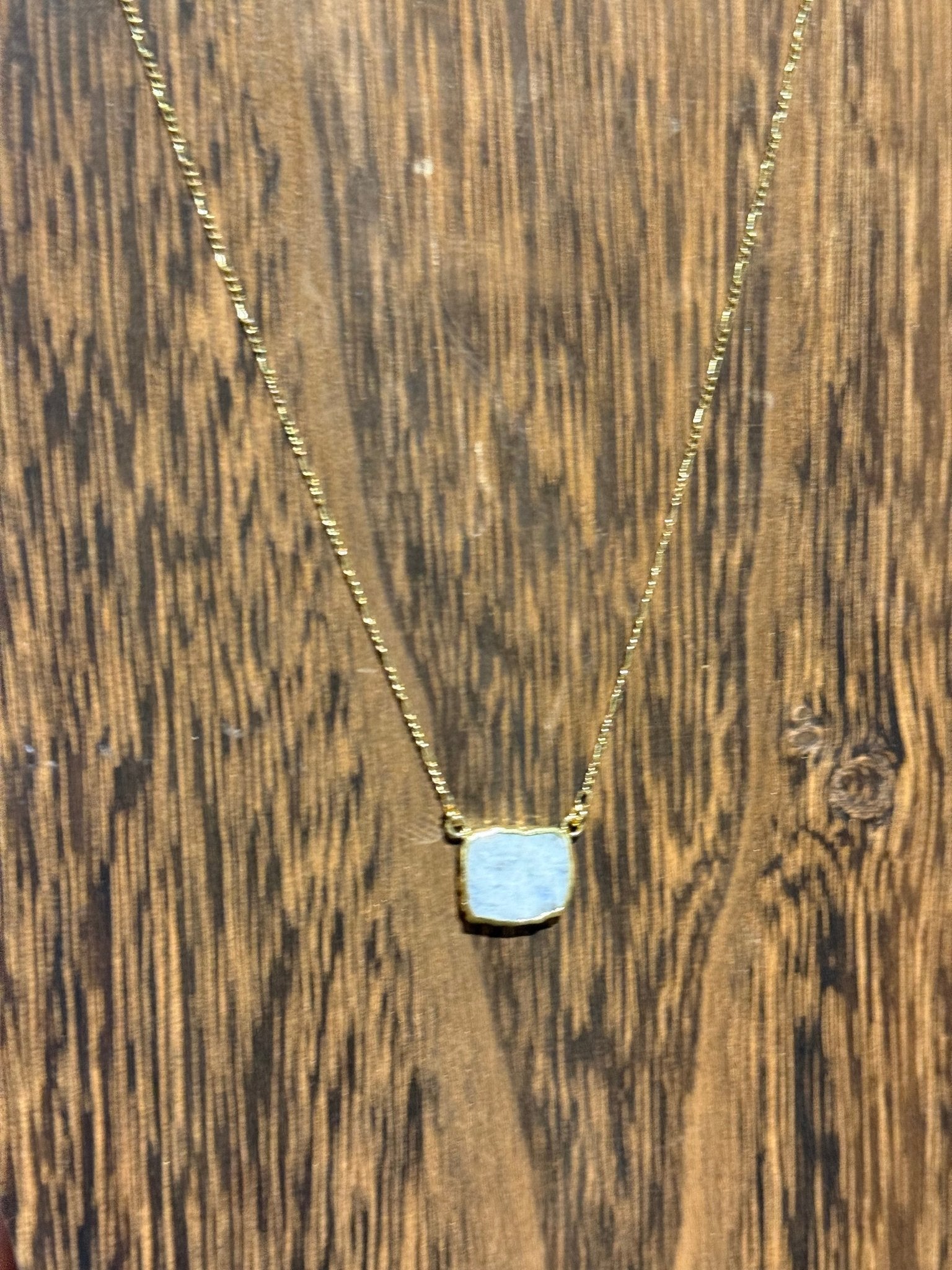The combination of organic shape, luminous moonstone, and gleaming gold plating makes this necklace perfect for boutiques seeking jewelry that is both distinctive and accessible. Its aesthetic speaks to contemporary trends—natural, artisanal, and subtly luxe—while remaining classic enough to be loved for years to come. The envelope carding enhances presentation, making it an effortless gift-ready option.