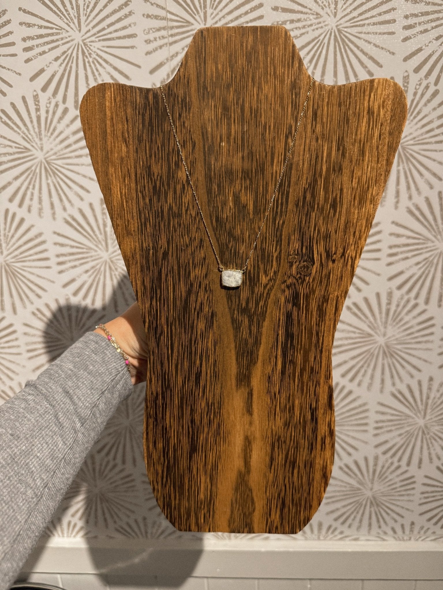 Soft, radiant, and strikingly individual, the Raw Moonstone Pendant Necklace embodies the beauty of natural imperfection with a refined, modern edge. Its one-of-a-kind design, versatile styling options, and meaningful appeal make it an essential addition to any curated jewelry collection, offering your customers a piece that is as unique as they are.