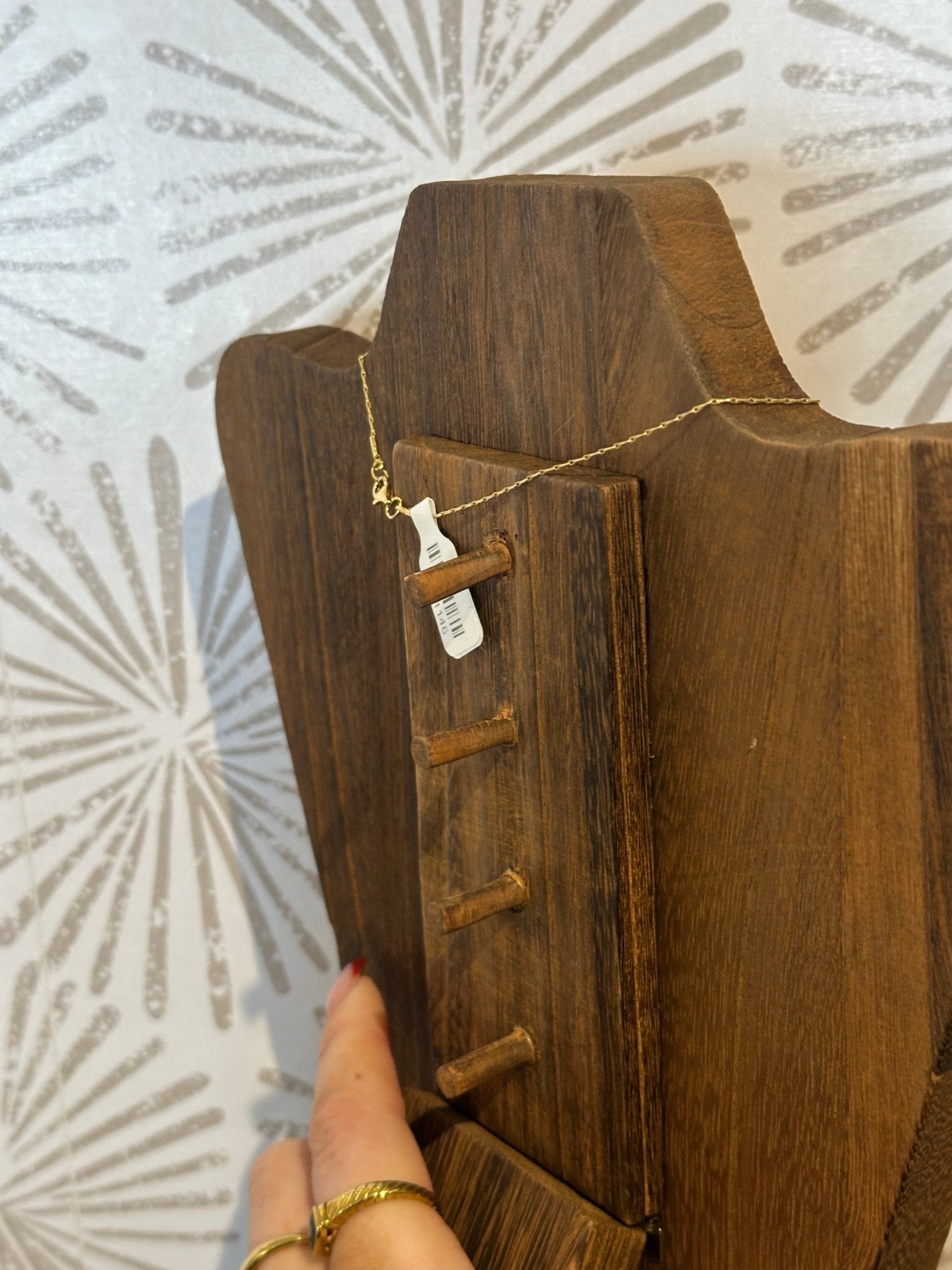 Crafted from 14k gold plated brass, the Crystal Necklace boasts a warm, luminous finish that complements any skin tone. The gold plating is carefully coated to resist tarnish and provide a hypoallergenic surface, ensuring it remains comfortable and safe for sensitive skin while maintaining its radiant shine. With an 18-inch barley chain, this necklace sits elegantly around the collarbone, providing the perfect length for layering with other necklaces or wearing alone for a subtle, refined statement.