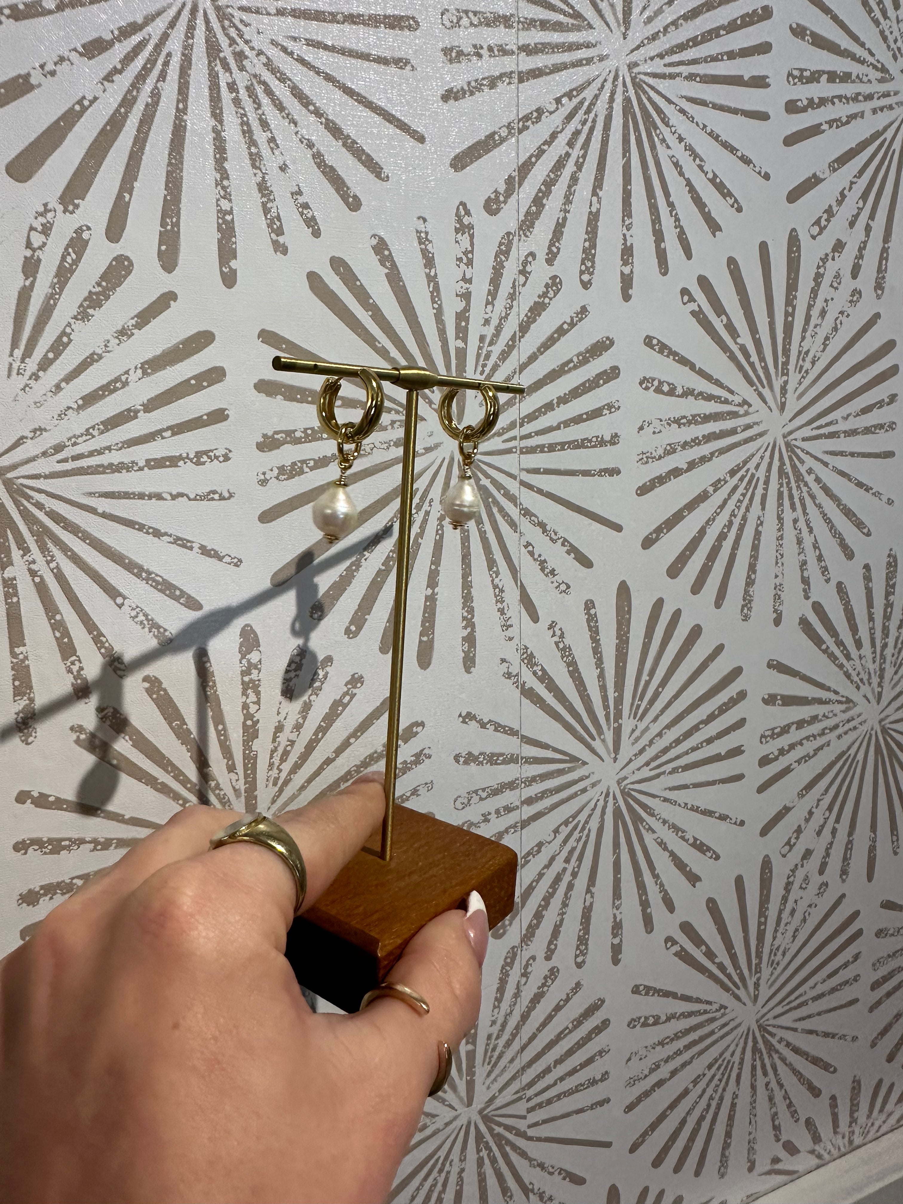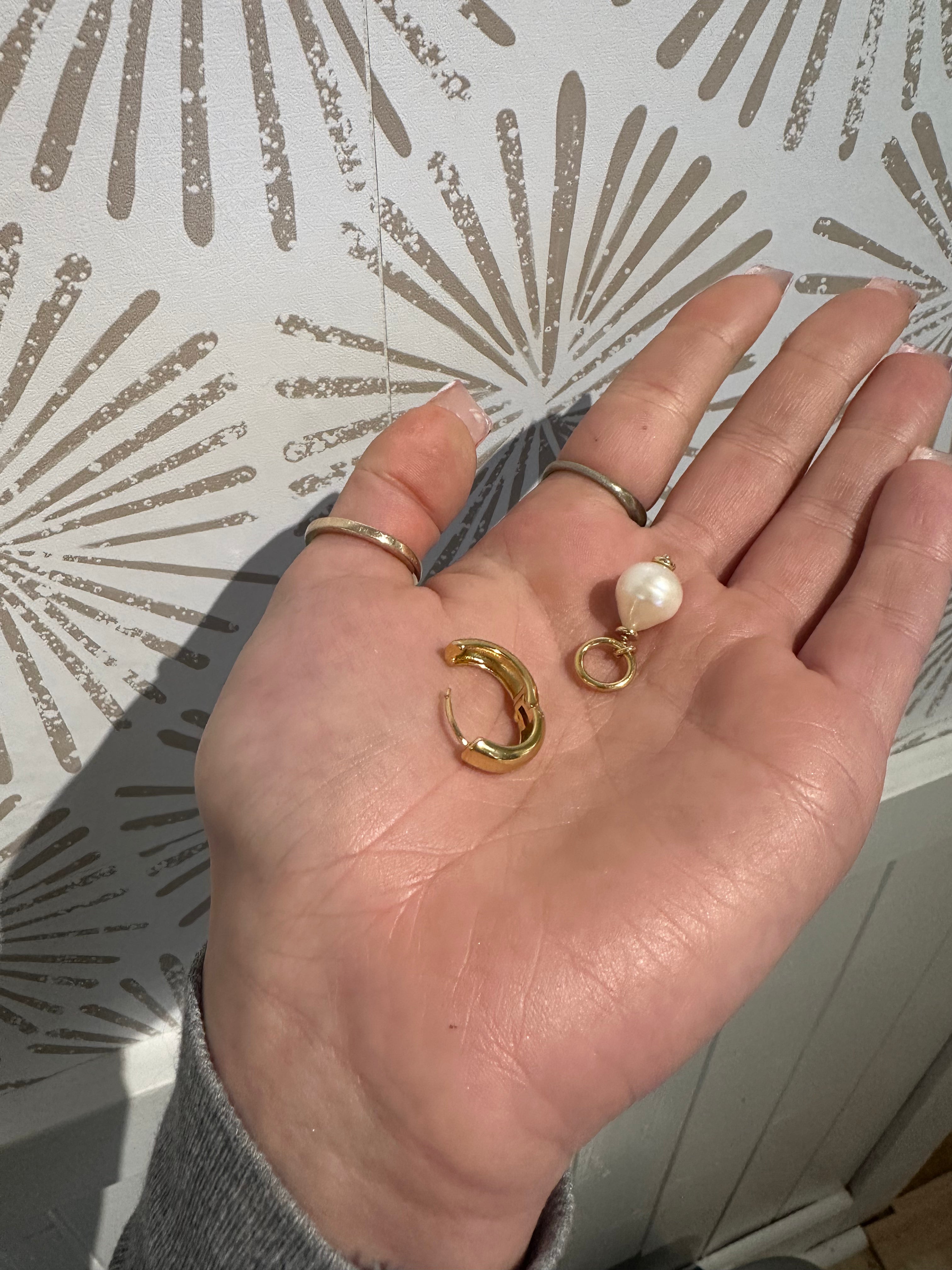 For added sophistication, these hoops can be paired with luminous pearl charm drops, which slide seamlessly onto the huggie hoop. Pearls have long been admired as symbols of wisdom, purity, and transformation, and their subtle glow adds an elegant dimension to the hoops. This combination allows customers to create a layered, curated look that feels personalized and luxurious without being overpowering.