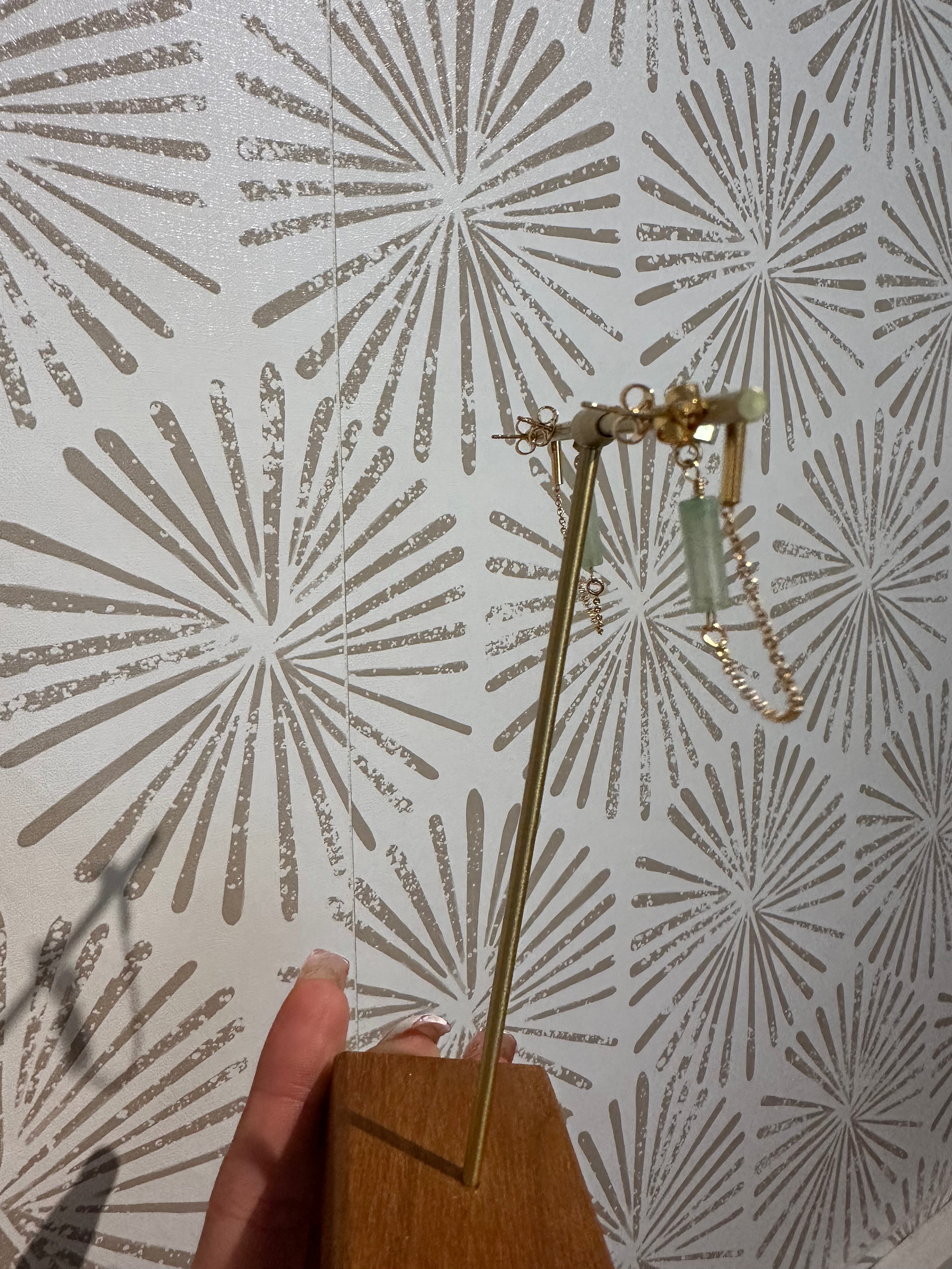 These side-by-side earrings are designed to follow the natural curve of the earlobe, creating a harmonious cascade that draws attention to the wearer’s style. Each green aventurine stone is carefully selected for its vibrant hue and subtle variations, ensuring every pair is unique. Green aventurine is celebrated as a stone of luck, prosperity, and heart-centered energy, adding meaningful symbolism to these beautiful earrings.