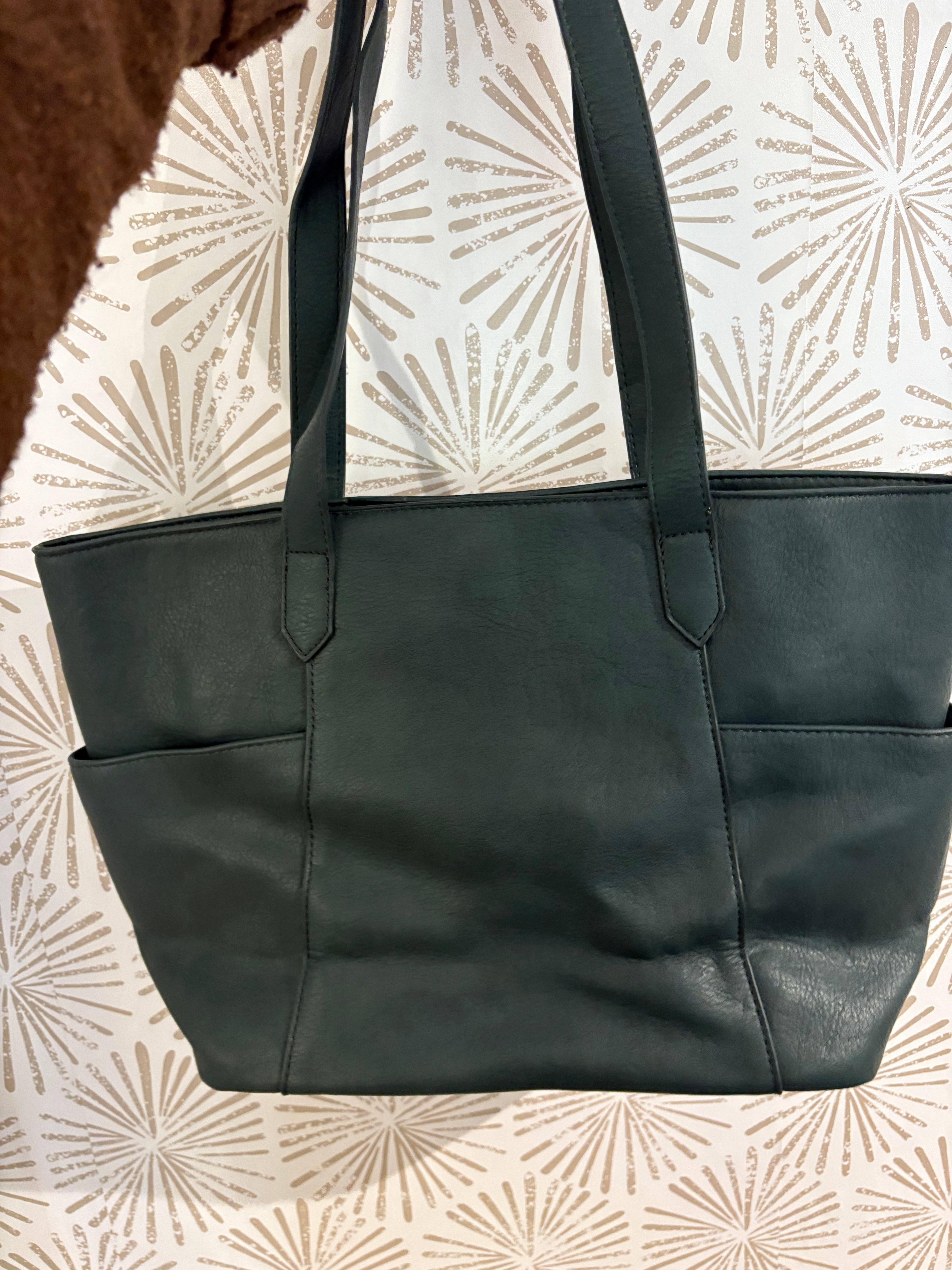 Classic & refined, this medium sized tote in soft vegan leather is adorned with a turn lock to securely close the top. The included removable insert bag keeps belongings extra secure or can be carried separately as a crossbody bag.