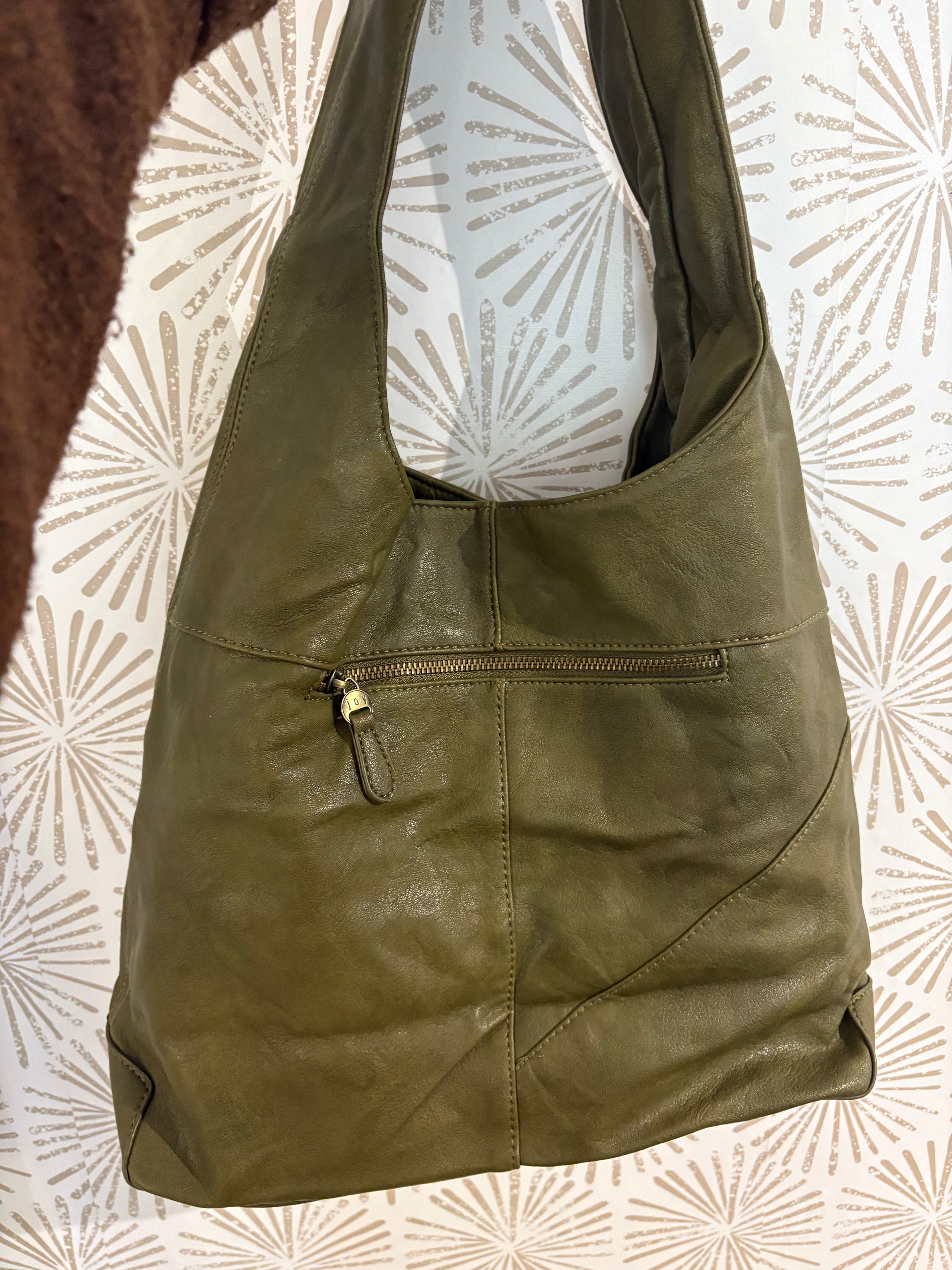 Dimensions: 9 in. H x 11.25 in. W x 5 in. DTop zip closureAdjustable and removable shoulder strap: 13 in. 24 in. dropSnaps into main hobo bagBrass plated hardwareLogo zip pulls100% Vegan leather (polyurethane)Floral fabric liningOne interior zip pocketTwo interior open pockets