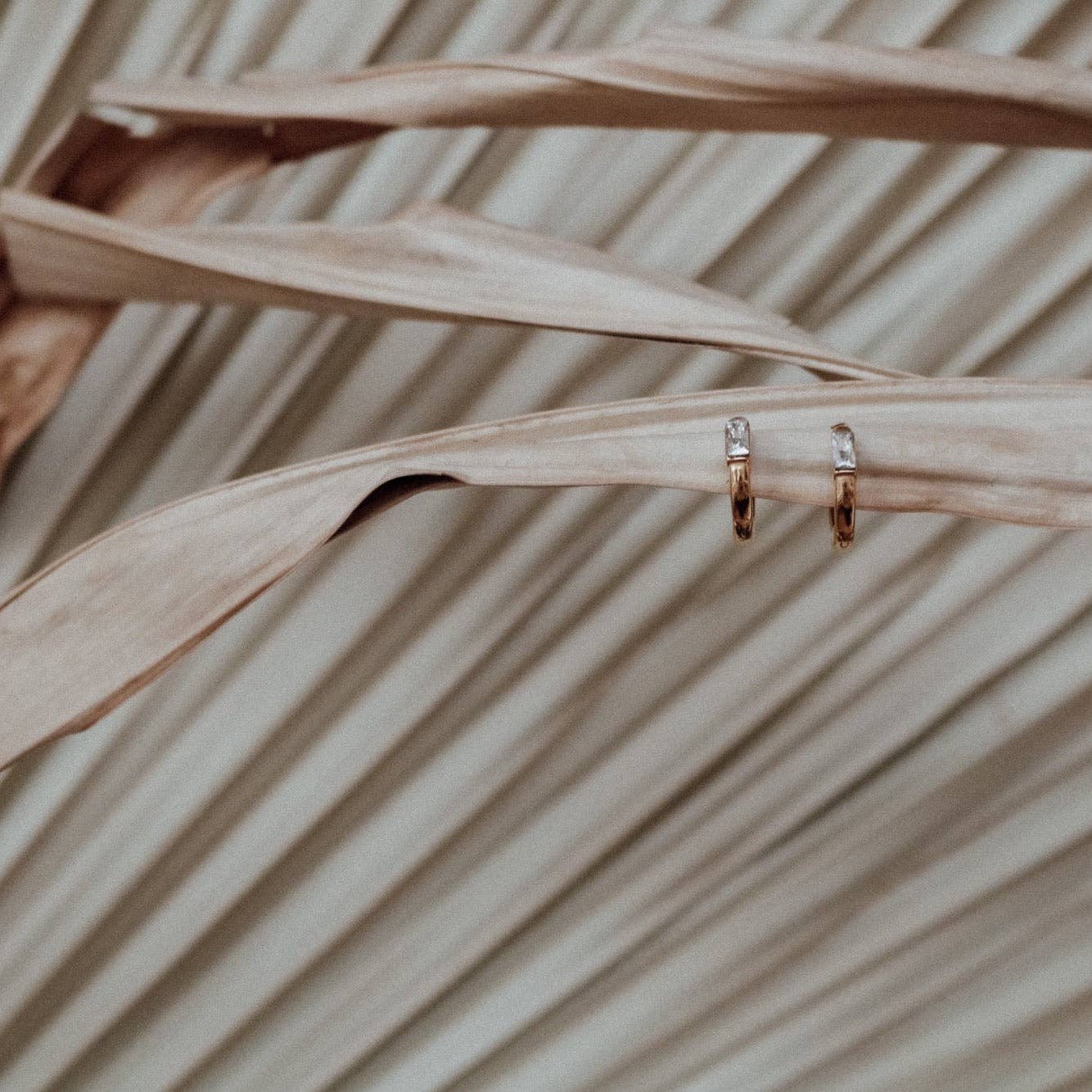 The perfect tiny everyday pair of huggies. These mini round hoops feature a single rectangle crystal. Minimalist and go with everything!
