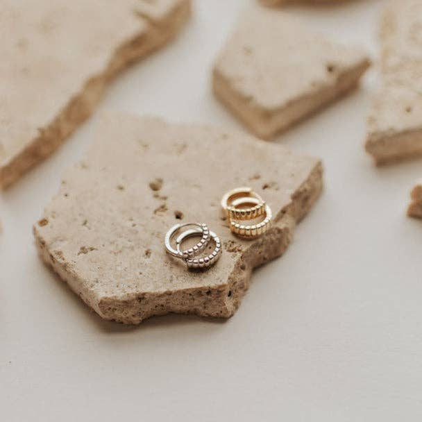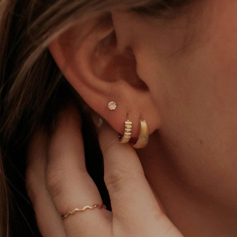The Rory Hoops are the perfect subtle hoops that go with anything! Featuring a huggie closure style and made from from high quality gold vermeil or sterling silver. Perfect on their own or in an earring stack! Mauve Jewelry Co.