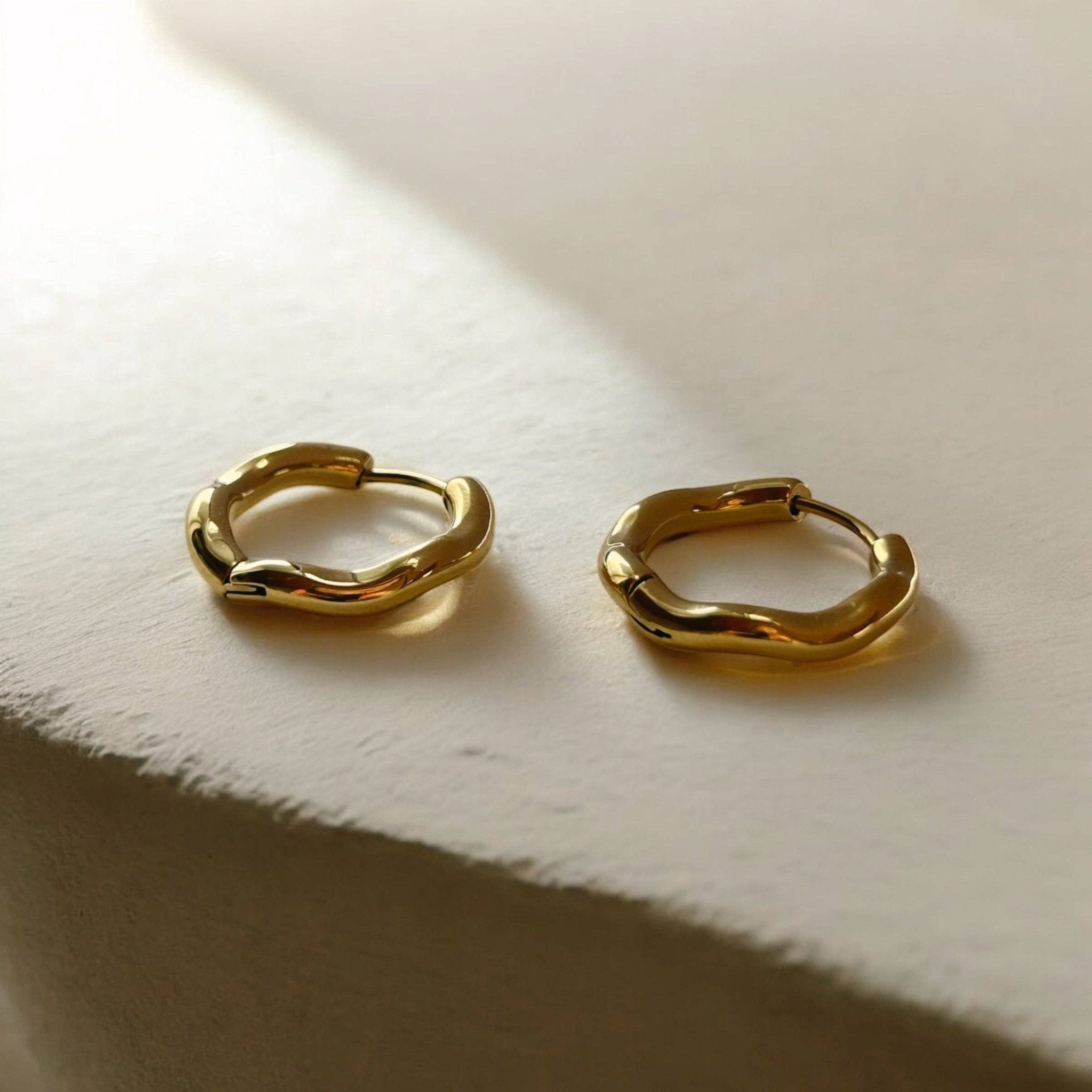 Our Sol Hoops are inspired by the sun… warm, golden and easy to wear. The wavy shape adds a subtle glow from every angle.