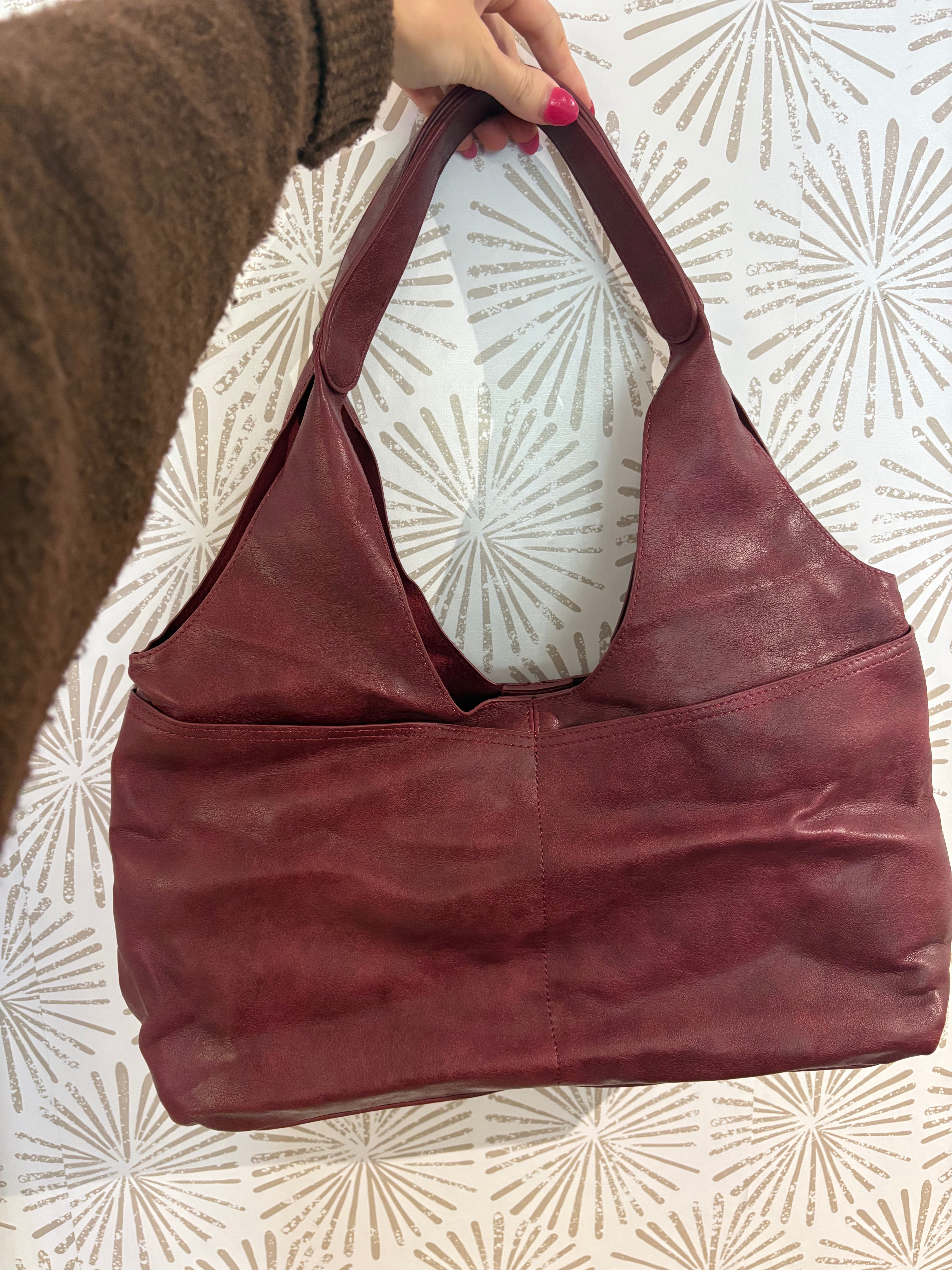 Form meets function in this striking vegan leather hobo bag, featuring plenty of pockets inside and out to keep essentials organized. The roomy interior is enhanced by the removable insert bag to keep your belongings secure. As an added value, you can carry the insert bag separately as a smaller crossbody bag.