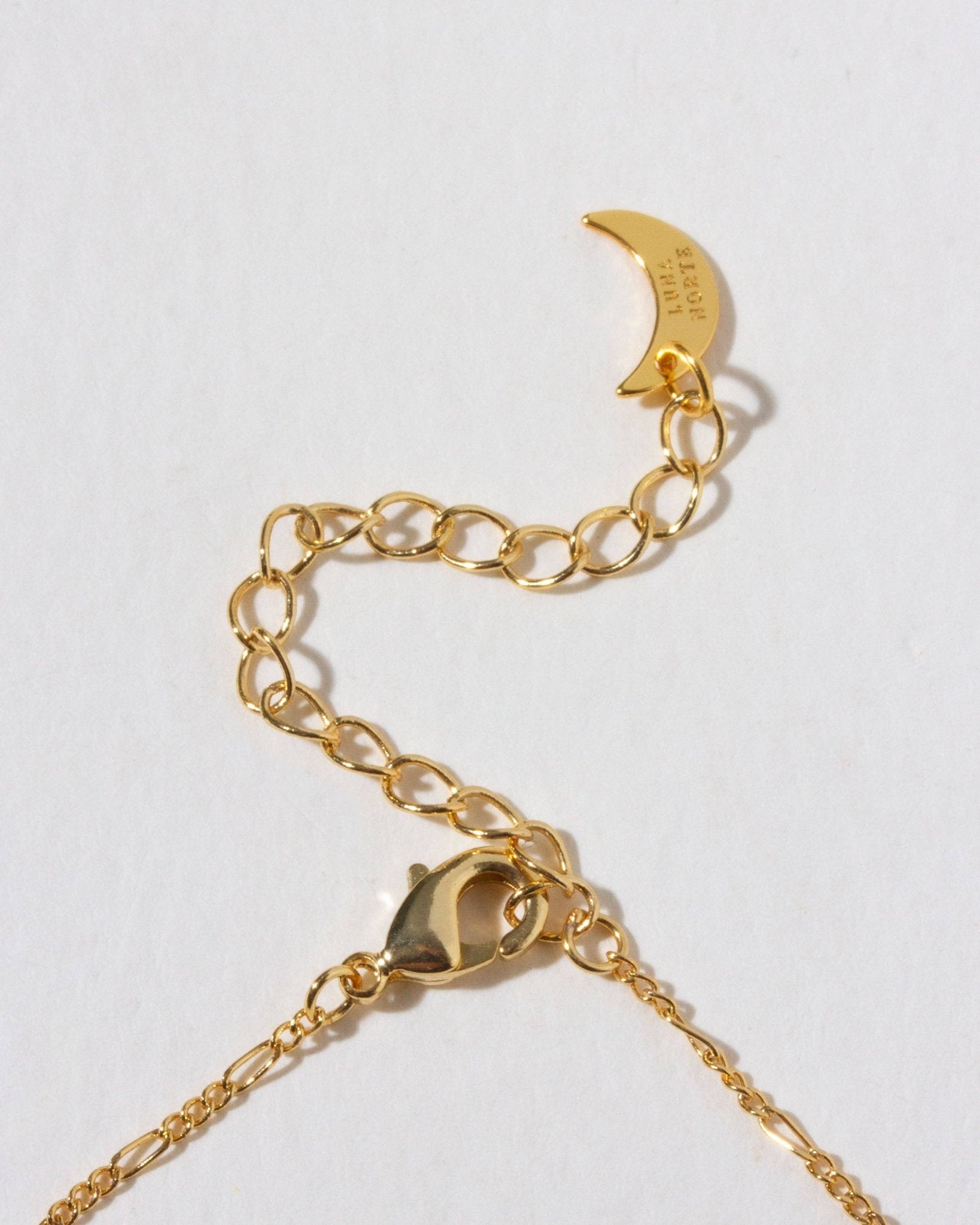 This necklace is a harmonious blend of natural imperfection and luxurious craftsmanship. The pendant features a raw, freeform moonstone, showcasing the stone’s organic shape and subtle, ethereal glow. Each moonstone is unique, with its own pattern, texture, and dimension, ensuring that every necklace feels like a one-of-a-kind treasure. The stone is carefully plated along its natural edges in 14KT gold-plated brass, creating a radiant frame that enhances the inherent beauty of the moonstone while adding a polished, elevated touch.