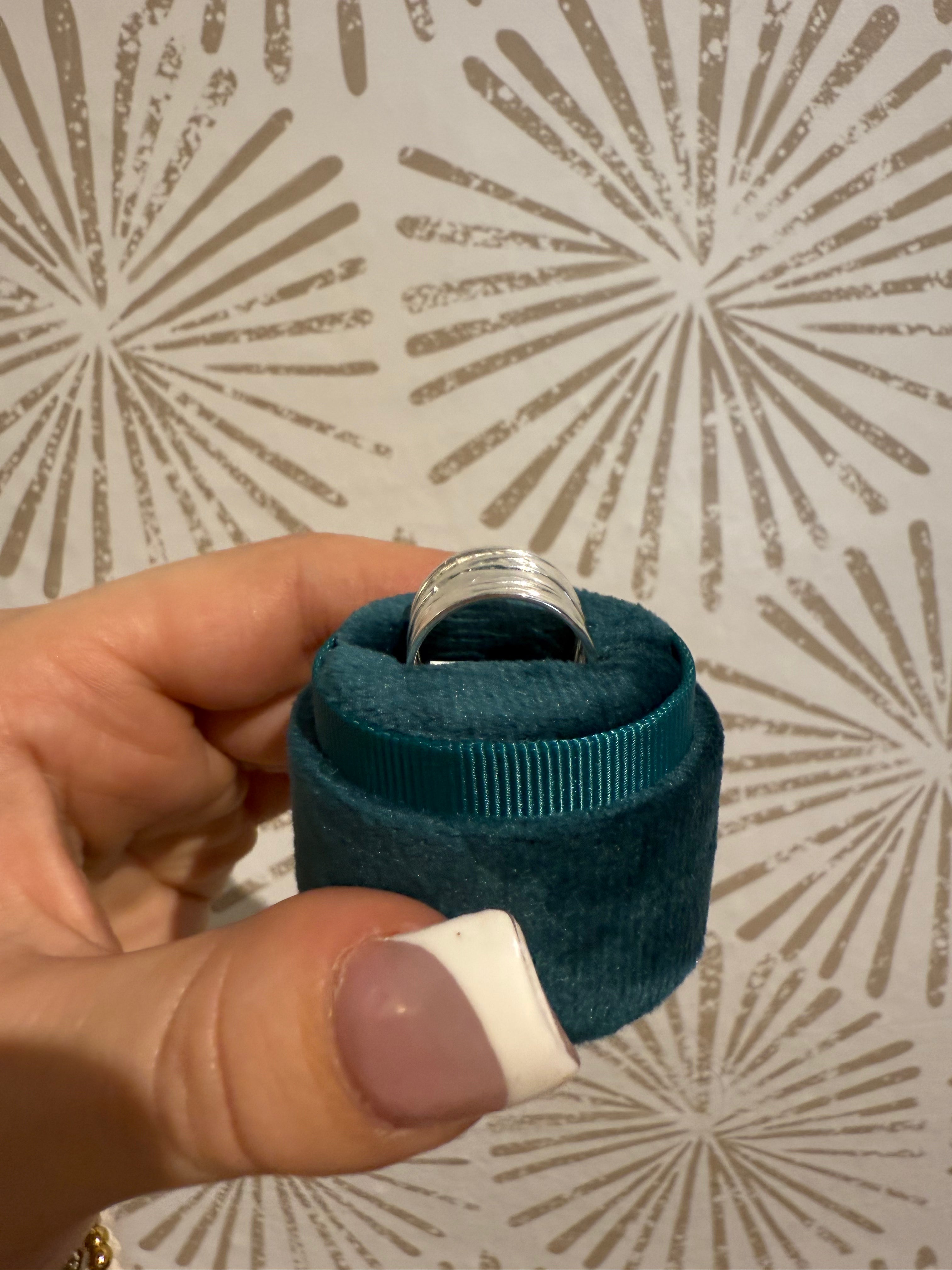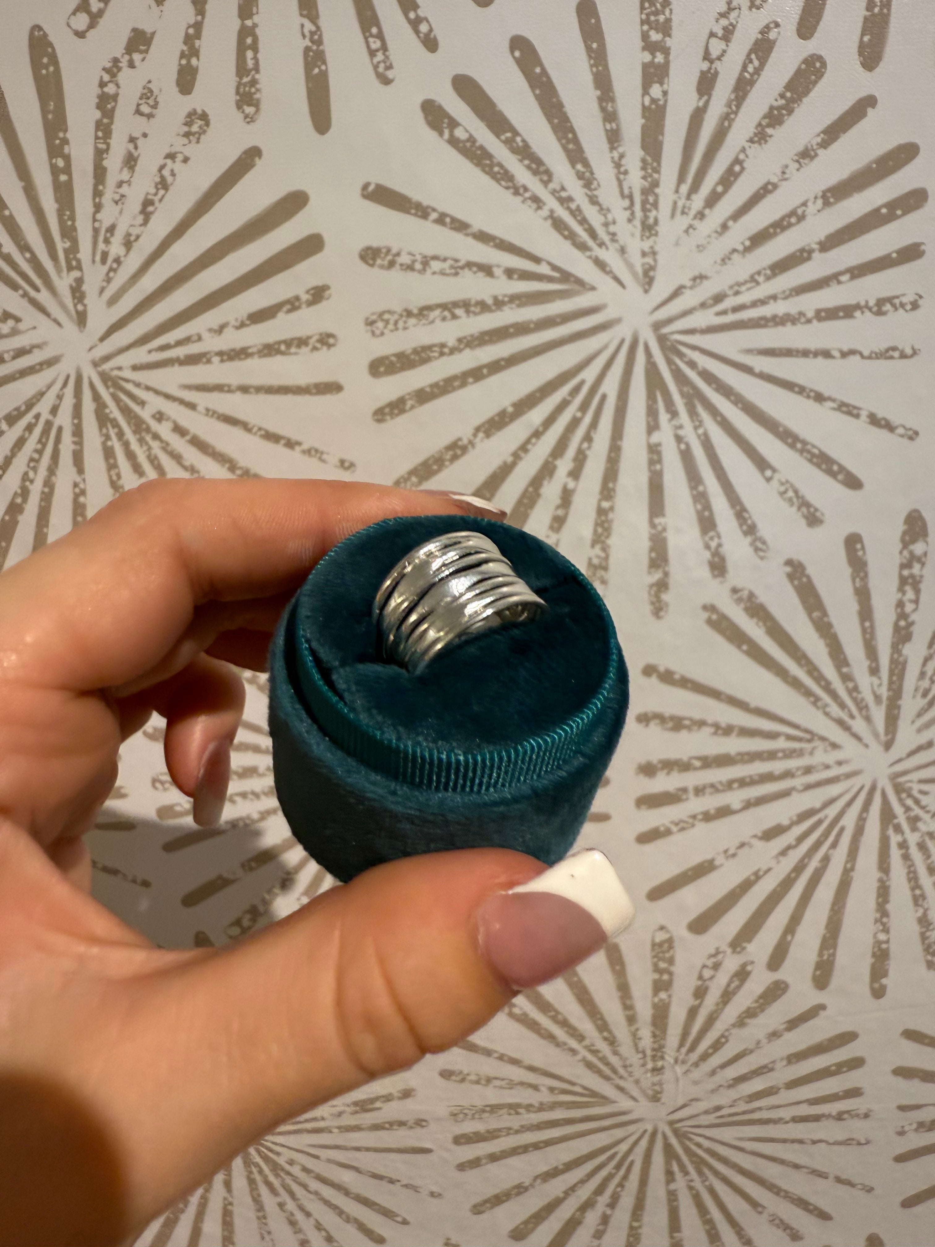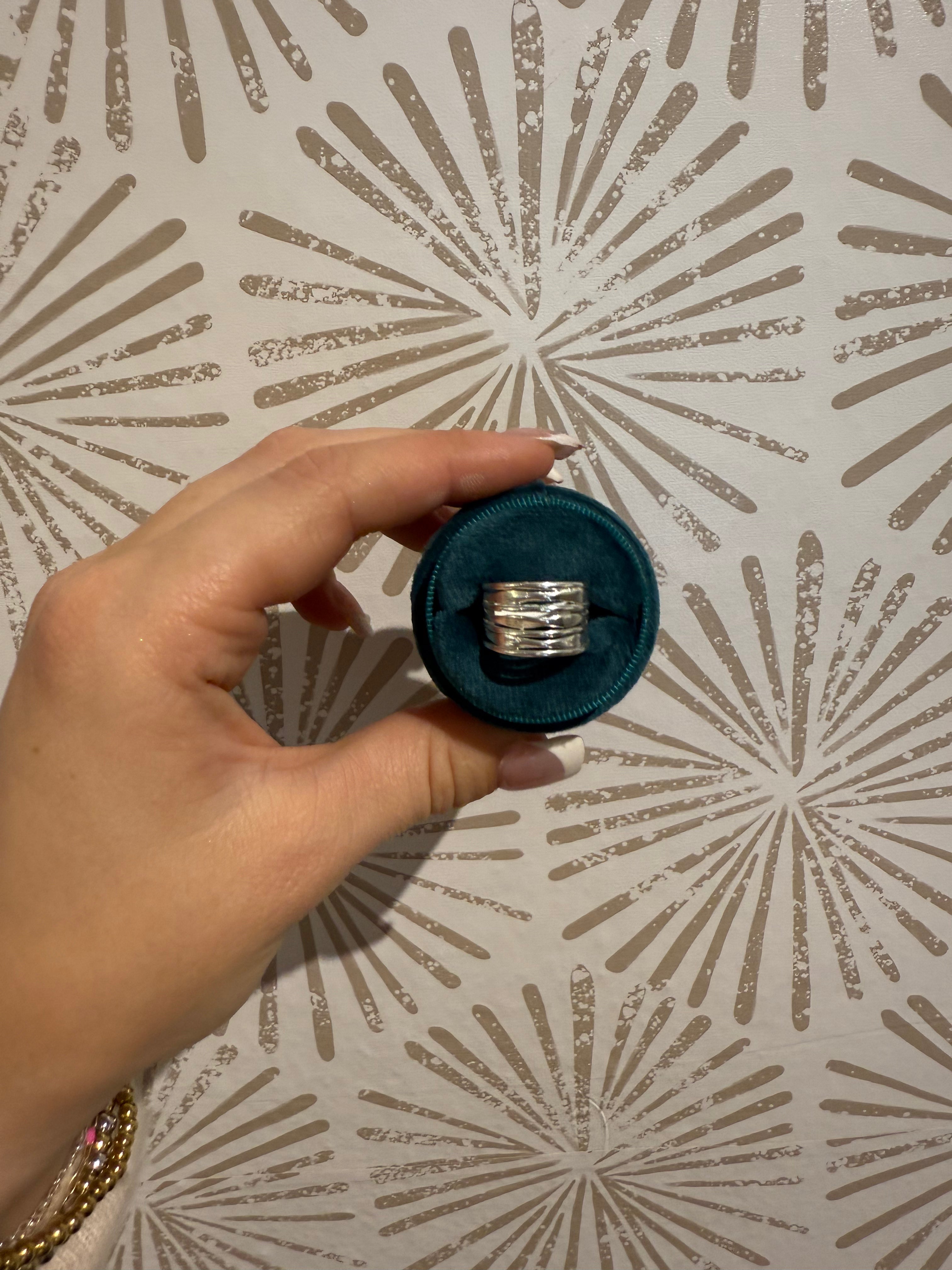 Sleek, sculptural, and effortlessly elegant, the Seven Band Sterling Silver Ring is a true statement of craftsmanship and modern design. Seven slender sterling silver bands come together in perfect harmony to form one bold, beautifully unified piece. The result is a wide band ring that radiates understated sophistication—an expression of strength, unity, and timeless style.