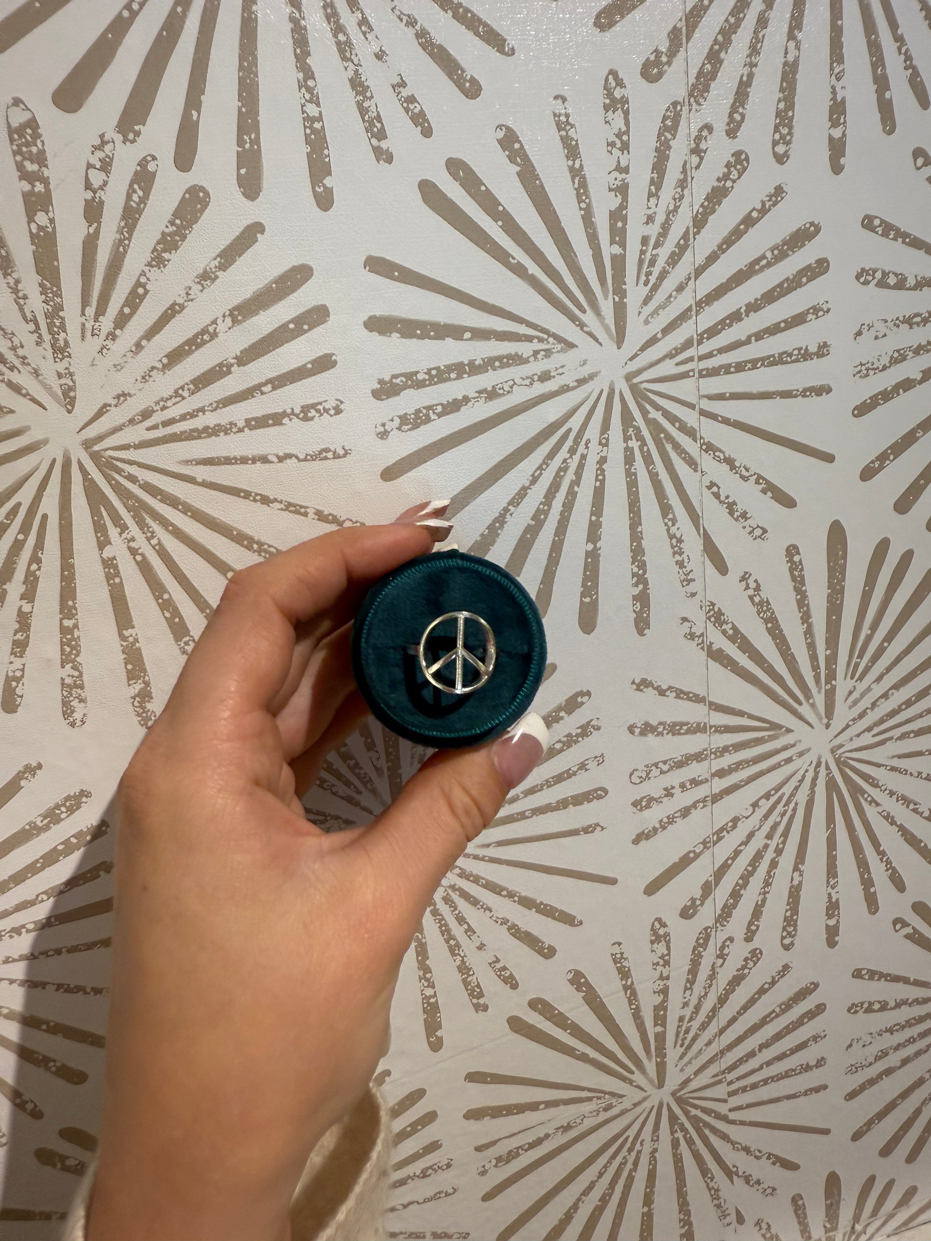 Crafted from high-quality .925 sterling silver, the Big Peace Ring offers durability, hypoallergenic wear, and lasting shine. Sterling silver is celebrated for its strength and timeless appeal, ensuring this ring remains a cherished part of your collection for years. The polished finish enhances the open design, allowing the symbol to catch the light and reflect its bold, meaningful presence. Its substantial design paired with a smooth, comfortable band makes it ideal for daily wear or as a statement piece for special occasions.