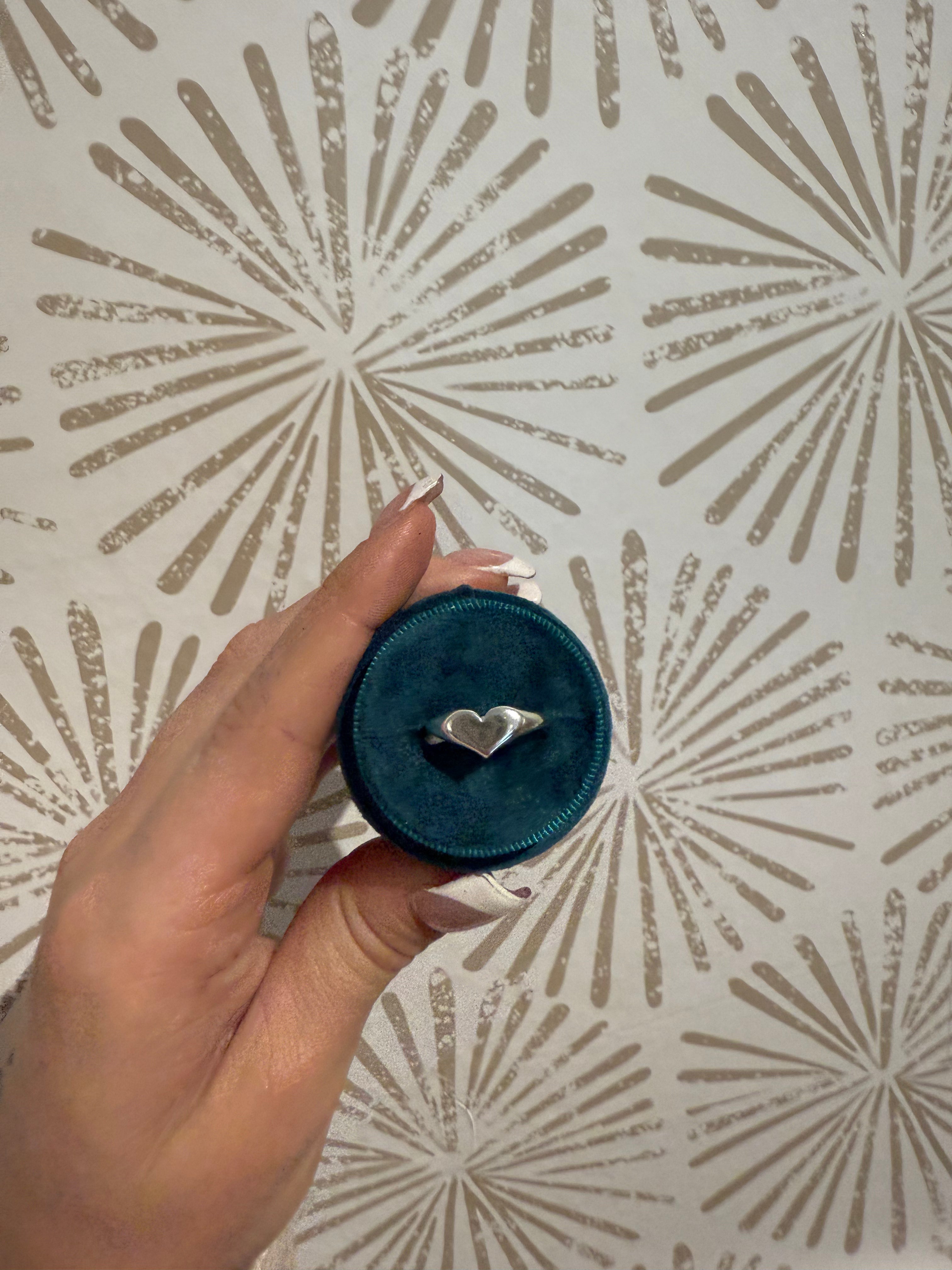 Design: Flat heart-shaped face, a modern twist on the classic signet ring