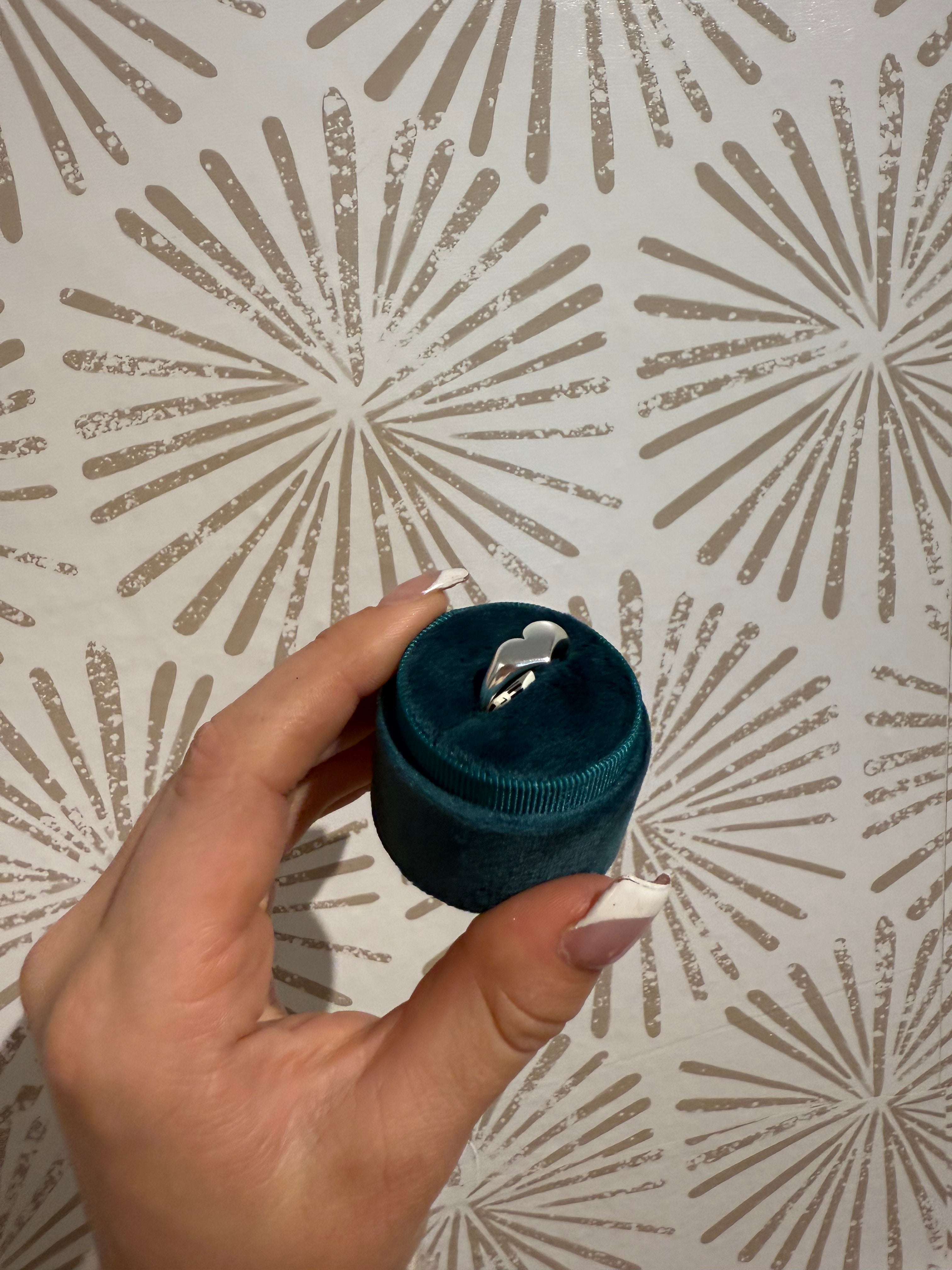 Crafted from .925 sterling silver, the Heart Signet Ring combines durability, hypoallergenic qualities, and timeless style. Sterling silver is prized for its strength, natural shine, and resistance to tarnish with proper care, ensuring that this ring remains a lasting part of your jewelry collection. Its flat signet design makes it perfect for stacking with other rings, allowing you to create a personalized, curated look, or it can be worn alone for a minimalist yet sophisticated style statement.
