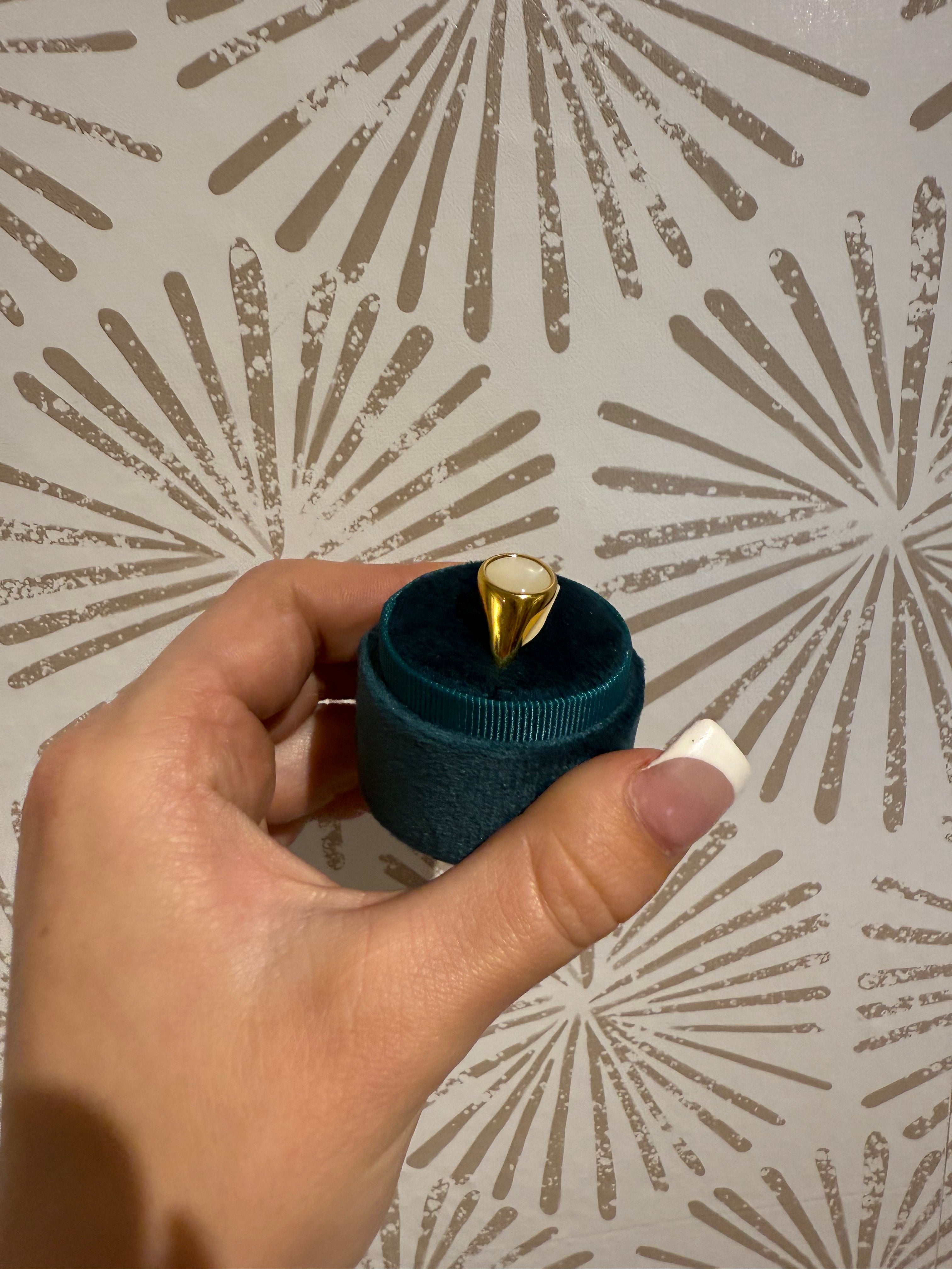 The Juno Ring is more than just a piece of jewelry—it is a reflection of individuality, confidence, and modern elegance. The iridescent shell captures the beauty of the natural world, while the gold-plated finish adds a bold, contemporary edge. Wearing the Juno Ring is a way to express your personality, elevate your style, and celebrate the harmony of nature and craftsmanship. It is a ring that draws the eye, sparks conversation, and leaves a lasting impression.